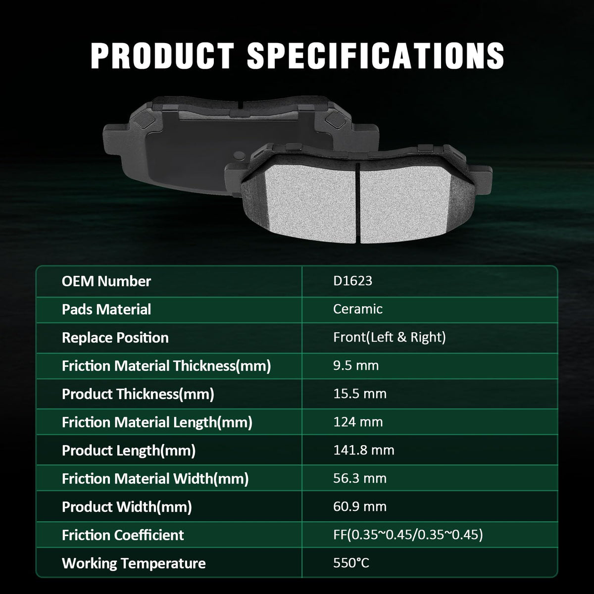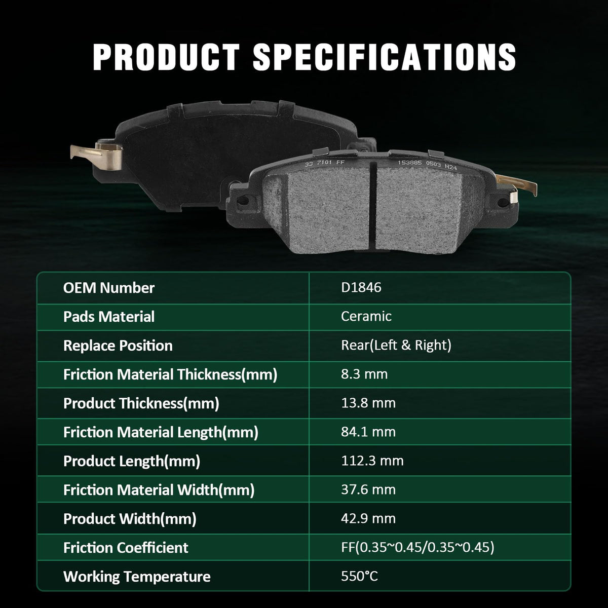 Automuto 8Pcs Front & Rear Ceramic Disc Brake Pads Set D1623 D1846 For Mazda Cx-5 2016-2021
