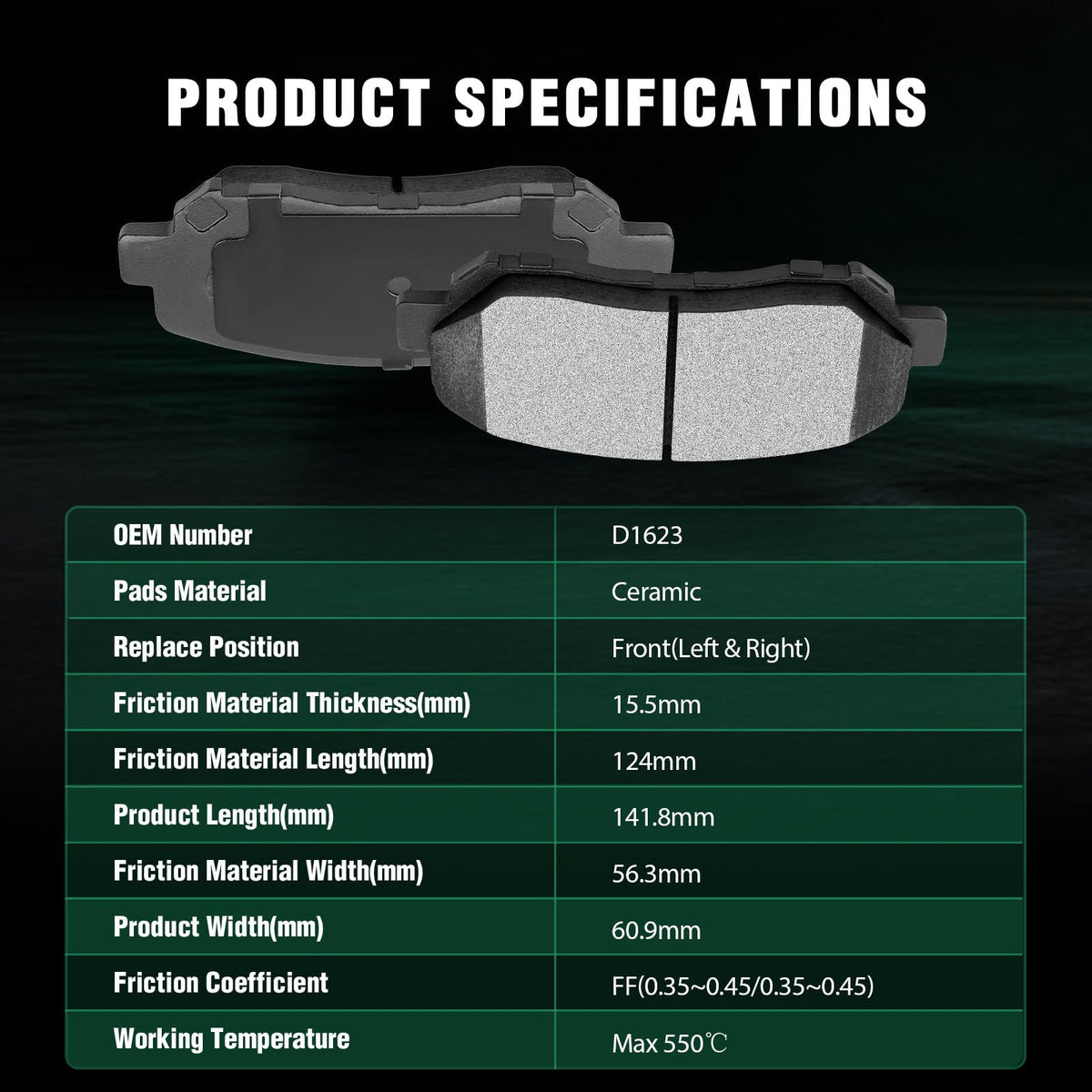 Automuto 8Pcs Front & Rear Ceramic Disc Brake Pads Set D1647 D1623 For Dodge Dart 2013-2016