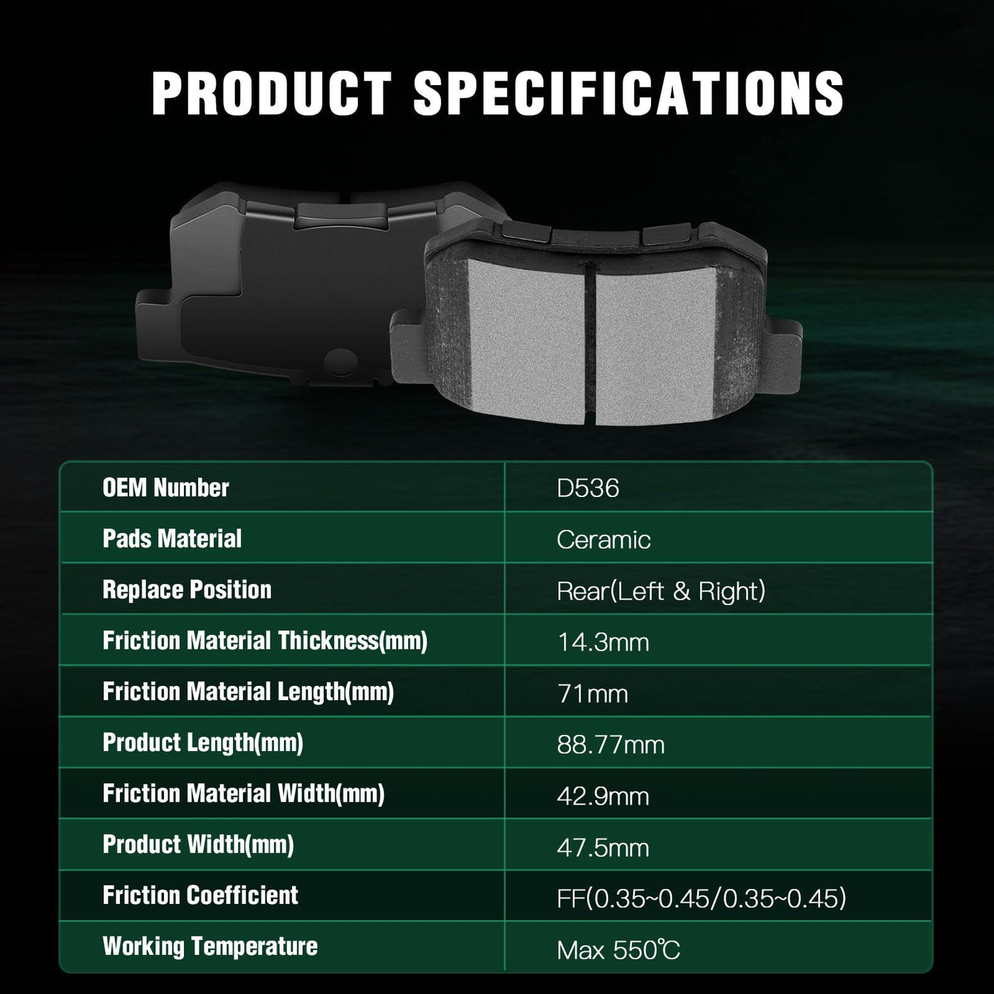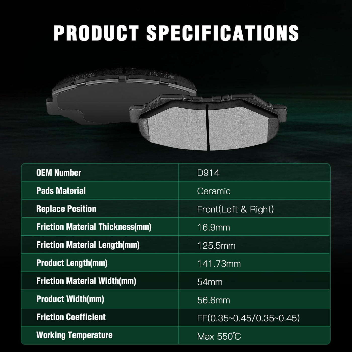 Fits:2002-2004 For Honda CR-V 2.4L2003-2011 For Honda Element 2.4LSpecifications:1)Placement on Vehicle:Front & Rear2)Brake Pad Material:Ceramic-Front Left and RightCeramic-Rear Left and Right3)OEM Part Numbers:ATD914C,D914-7795-Front Left and RightATD536C,D536-7418-Rear Left and RightPackage Including:8*Ceramic Disc Brake Pads Set