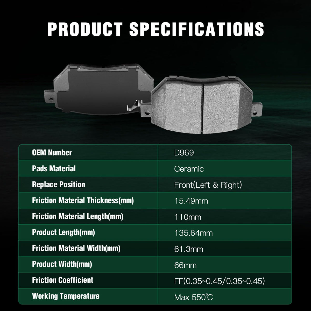 Automuto 8Pcs Front & Rear Ceramic Disc Brake Pads Set D969 D905 For Infiniti Fx35 Fx45 For Nissan Altima Maxima Murano