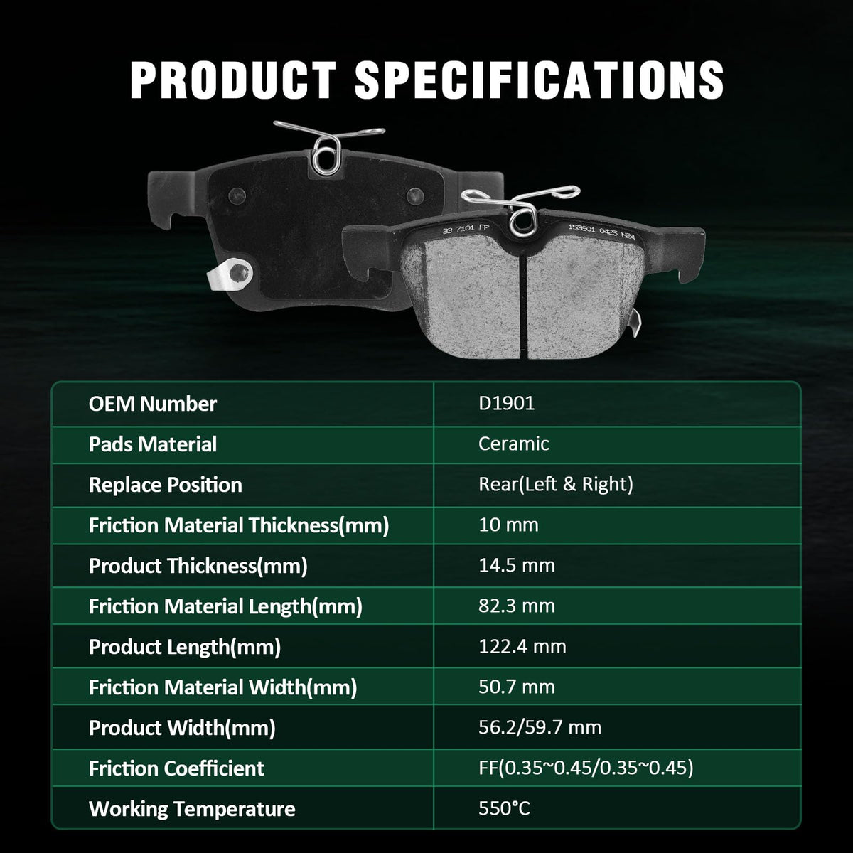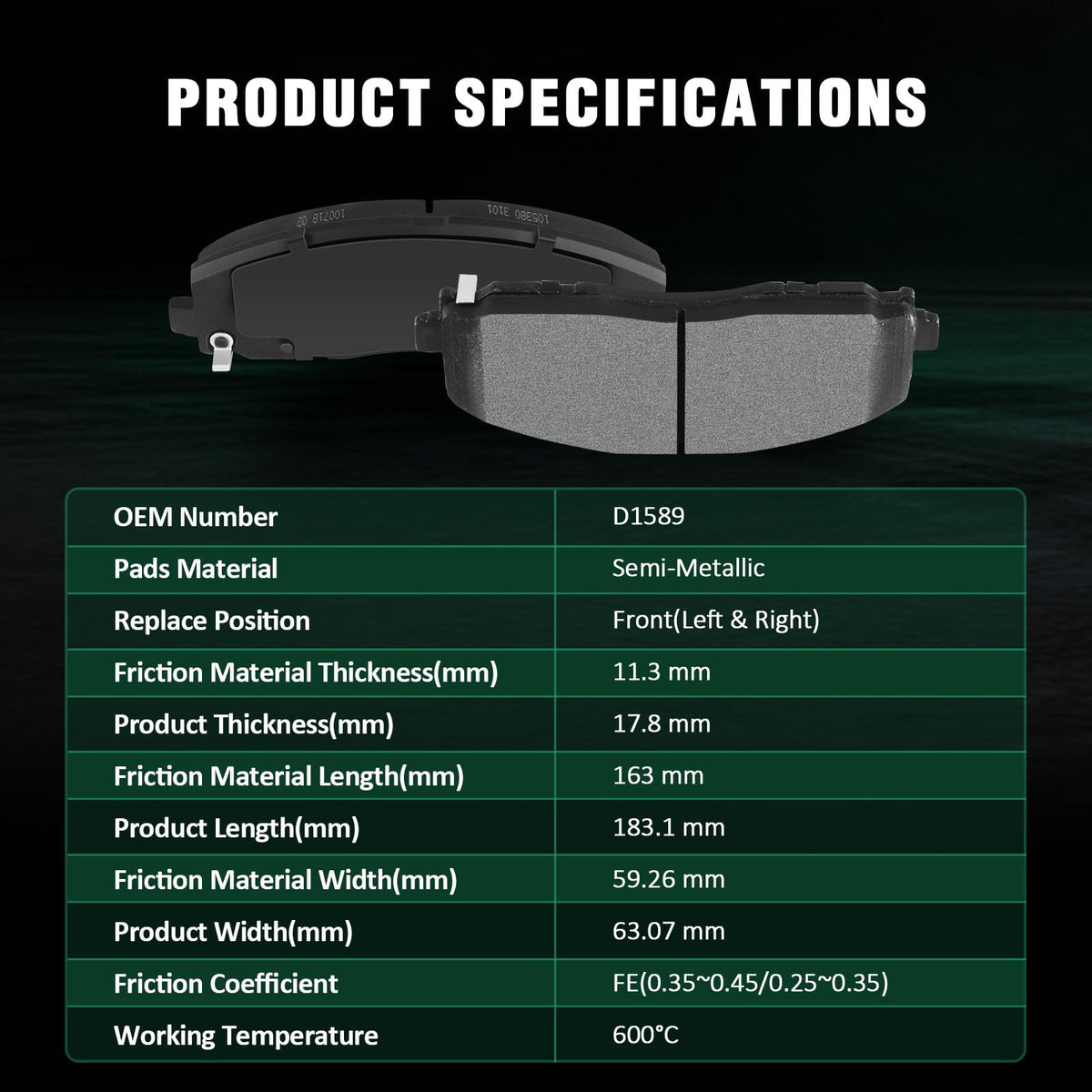 Fits:For Chrysler Pacifica 2017-2023For Chrysler Voyager 2020-2023Specifications:1)Placement on Vehicle:Front & Rear2)Brake Pad Material:Semi-Metallic-Front Left & RightCeramic-Rear Left & Right3)OEM Part Numbers:D1589-8800-Front Left & RightD1901-9128-Rear Left & RightPackage Including:8*Ceramic/Semi-Metallic Disc Brake Pads Set