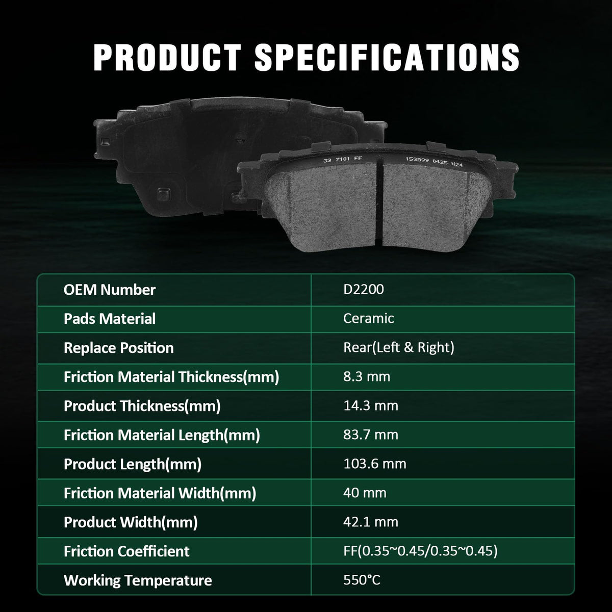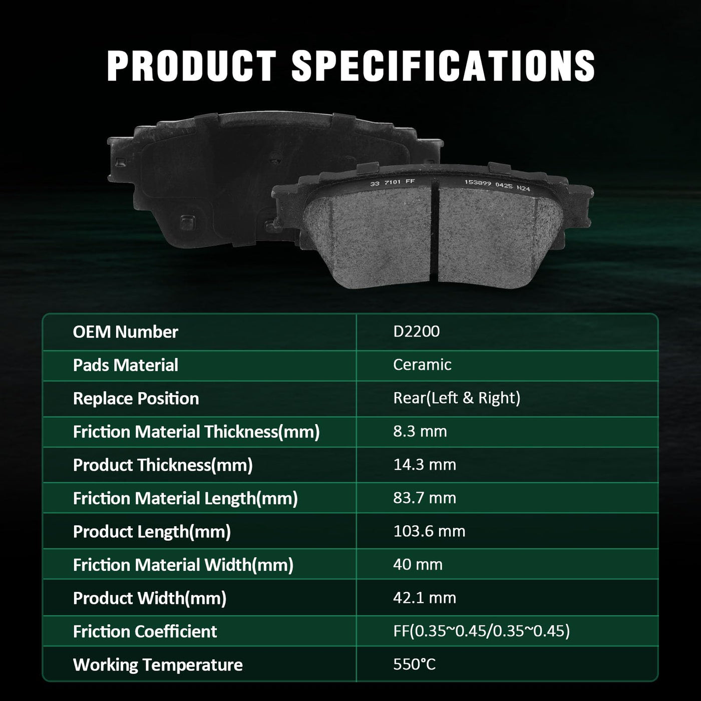 Fits:For Nissan Altima Advance Sedan 4-Door 2021-2022For Nissan Altima Edition ONE Sedan 4-Door 2019For Nissan Altima Exclusive Sedan 4-Door 2021-2022For Nissan Altima Platinum Sedan 4-Door 2019-2022For Nissan Altima S Sedan 4-Door 2019-2022For Nissan Altima SE Sedan 4-Door 2021-2022For Nissan Altima Sense Sedan 4-Door 2021-2022For Nissan Altima SL Sedan 4-Door 2019-2022For Nissan Altima SR Midnight Edition Sedan 4-Door 2022For Nissan Altima SR Sedan 4-Door 2019-2022For Nissan Altima SV Sedan 4-Door 2019-2022Specifications:1)Placement on Vehicle:Front & Rear2)Brake Pad Material:Semi-Metallic-Front Left & RightCeramic-Rear Left & Right3)OEM Part Numbers:ATD1650C,D1650-8878-Front Left & RightD2200-9441-Rear Left & RightPackage Including:8*Ceramic/Semi-Metallic Disc Brake Pads Set