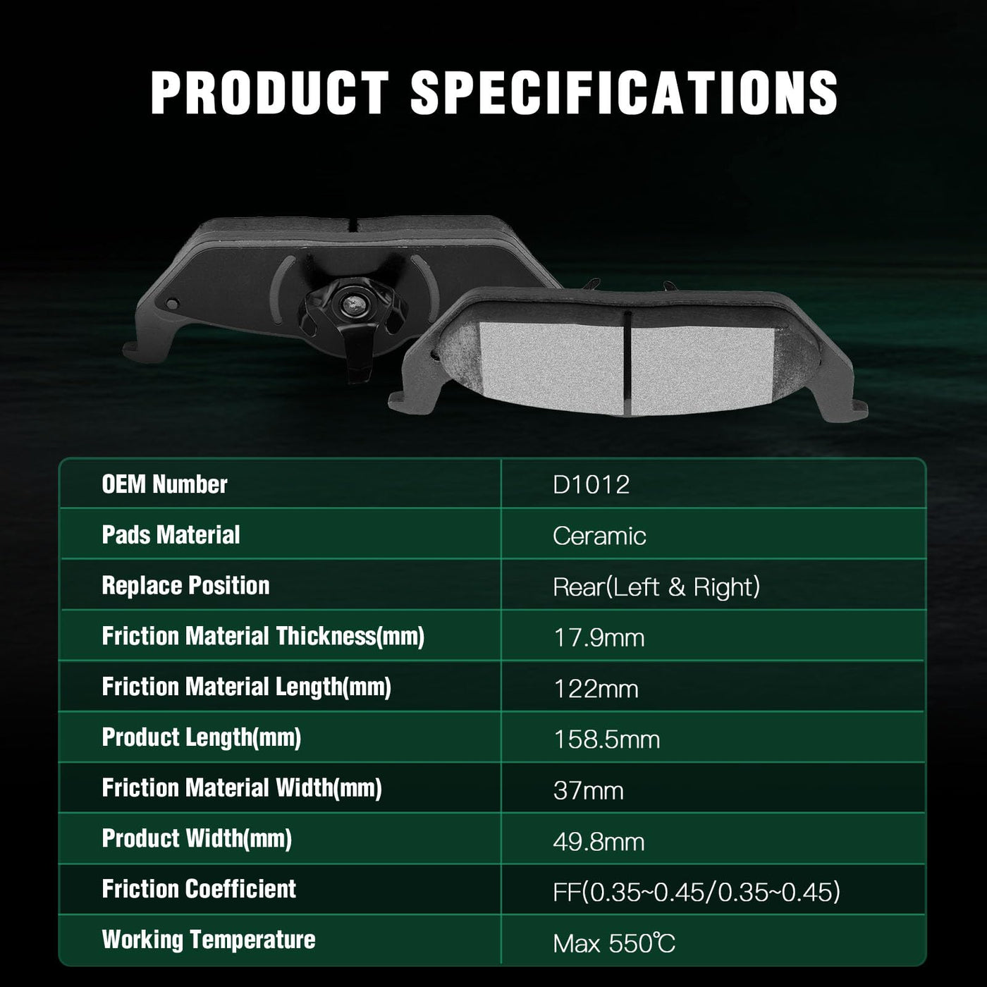 Fits:2004-2009 For Ford For F-150 4.2L2004-2009 For Ford For F-150 4.6L2004-2009 For Ford For F-150 5.4L2006-2008 For Lincoln Mark LT 5.4LSpecifications:1)Placement on Vehicle:Front & Rear2)Brake Pad Material:Semi-Metallic-Front Left and RightCeramic-Rear Left and Right3)OEM Part Numbers:ATD1083C,D1083-7915-Front Left and RightATD1012C,D1012-7916-Rear Left and RightPackage Including:8*Disc Brake Pads Set