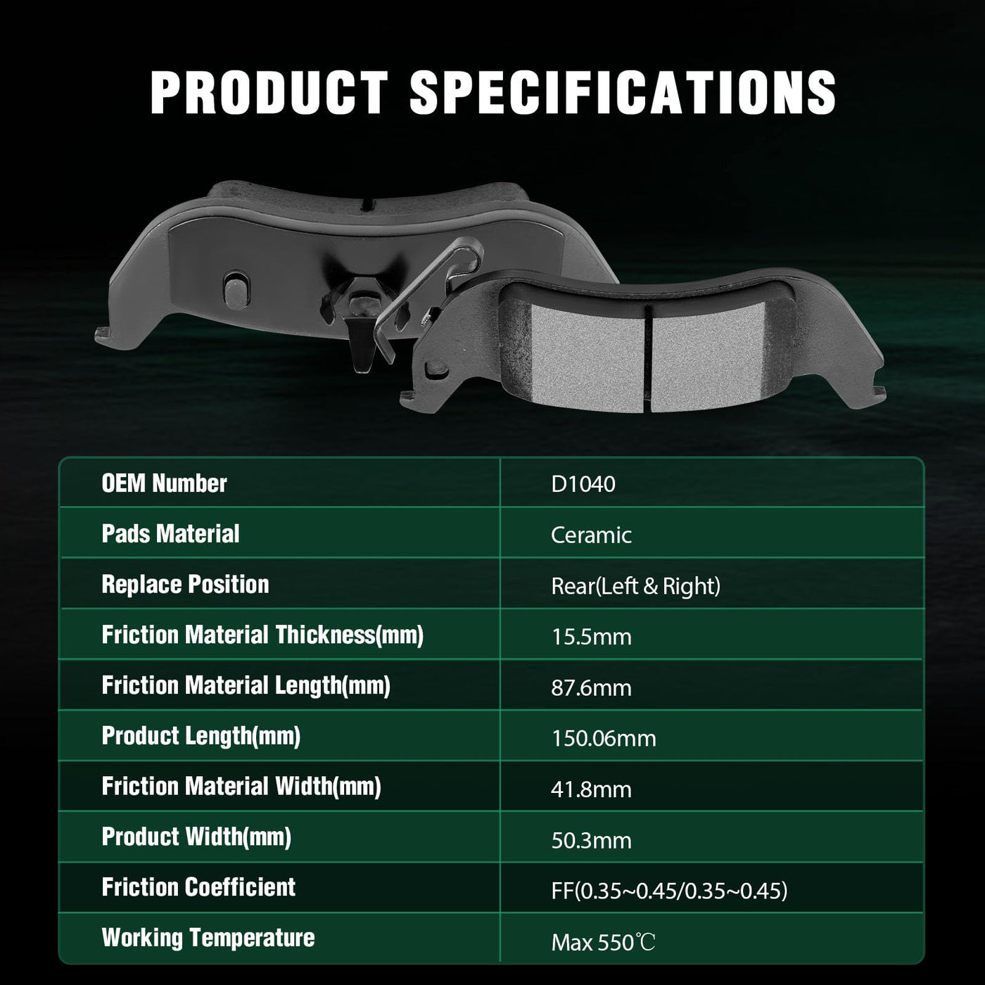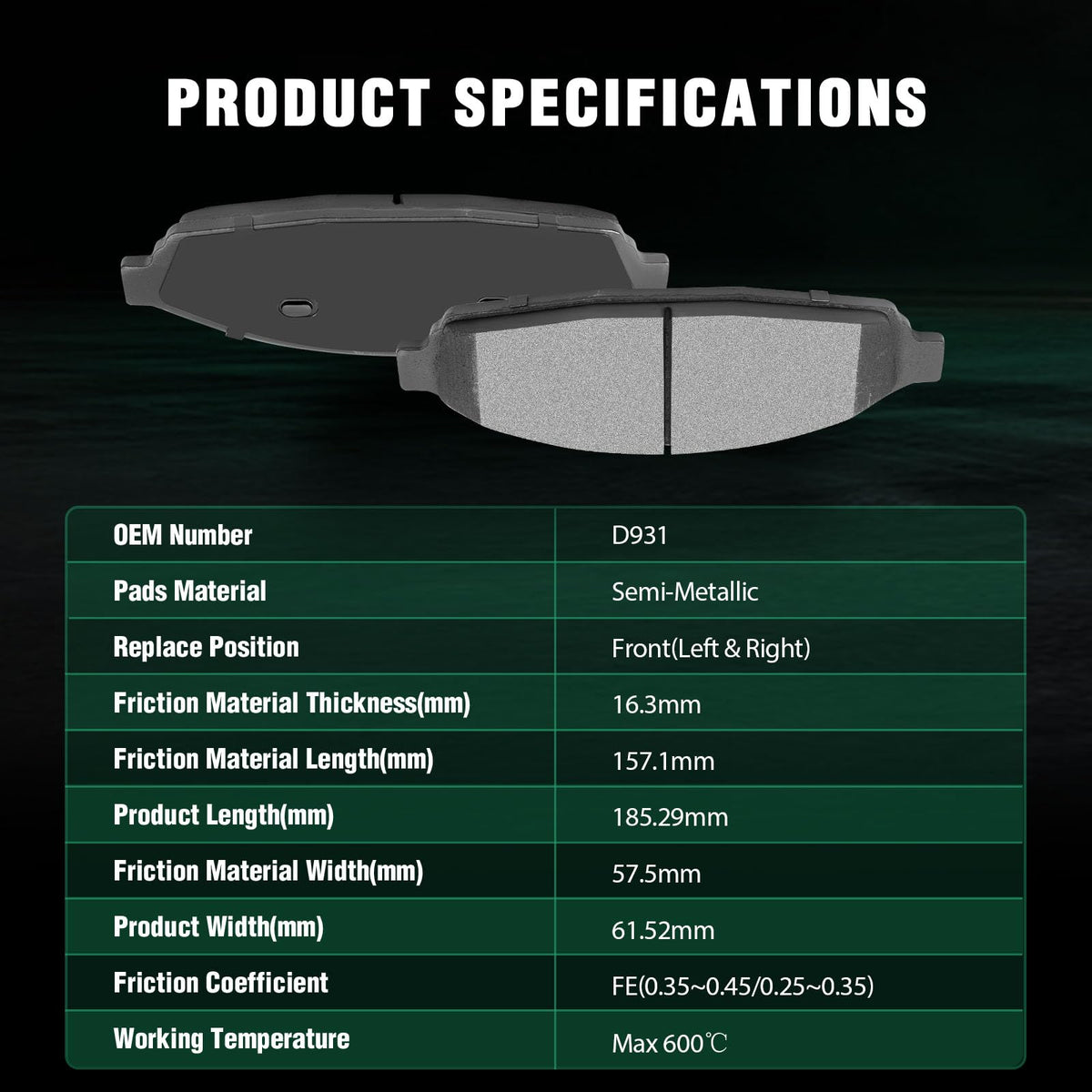 Fits:2003-2011 For Ford For Crown Victoria 4.6L2003-2011 For Lincoln Town Car 4.6L2003-2011 For Mercury For Grand Marquis 4.6L2003-2004 For Mercury Marauder 4.6LSpecifications:1)Placement on Vehicle:Front & Rear2)Brake Pad Material:Semi-Metallic-Front Left and RightCeramic-Rear Left and Right3)OEM Part Numbers:ATD931C,D931-7834-Front Left and RightATD1040AC,D1040-7944-Rear Left and RightPackage Including:8*Disc Brake Pads Set