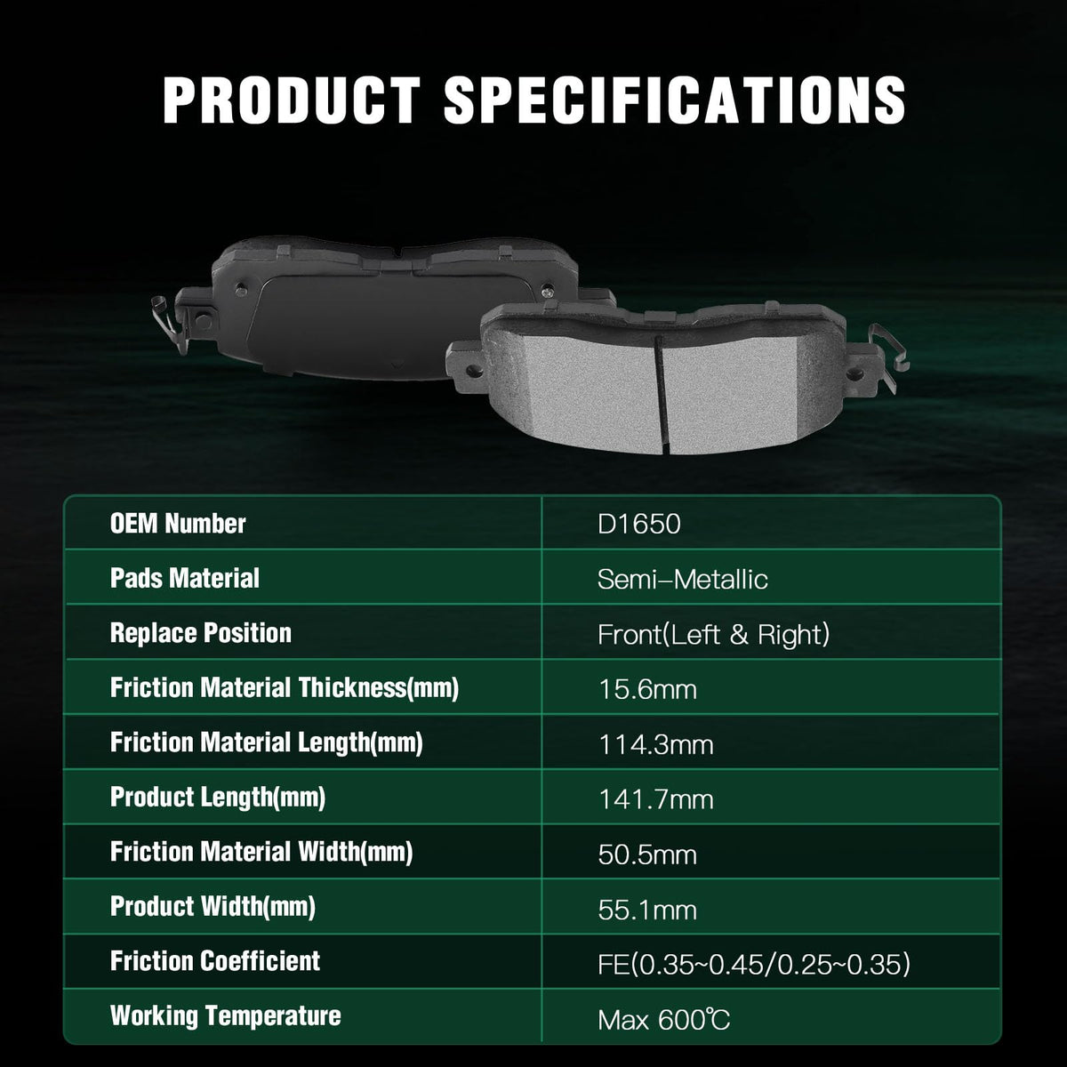 Automuto 8Pcs Front & Rear Disc Brake Pads Set D1650 D905 For Nissan Altima 2013-2023