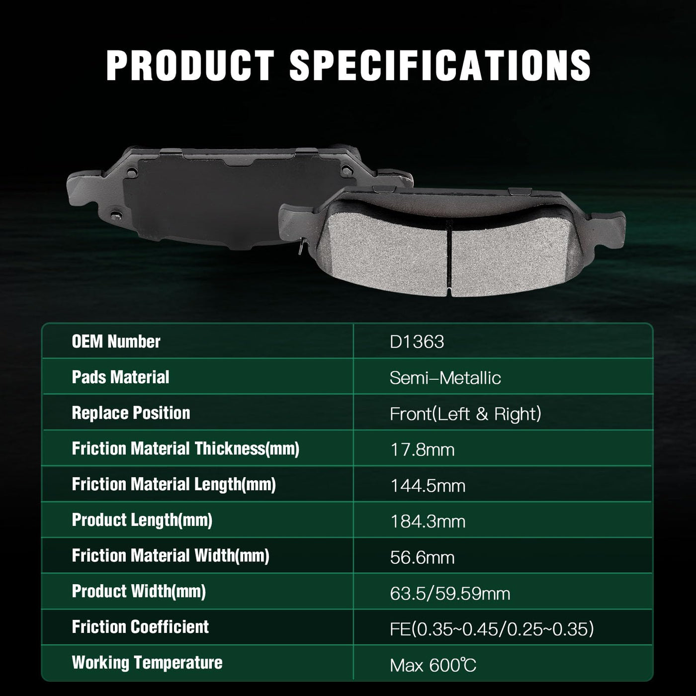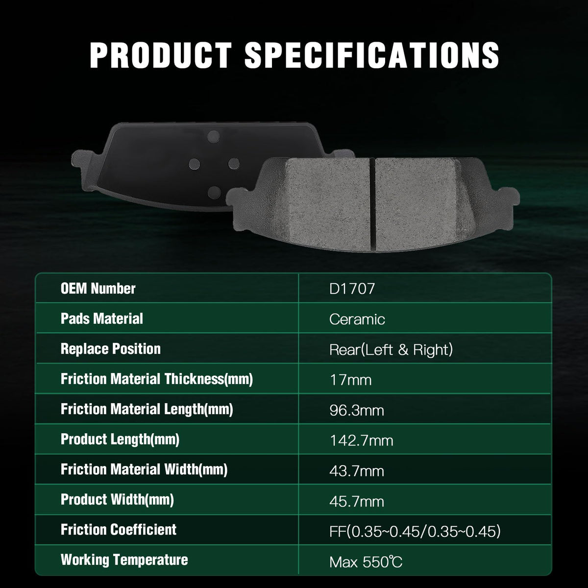 Automuto 8Pcs Front & Rear Disc Brake Pads Set D1707 D1363 For Cadillac Escalade Escalade Esv For Chevrolet Silverado 1500 Subur