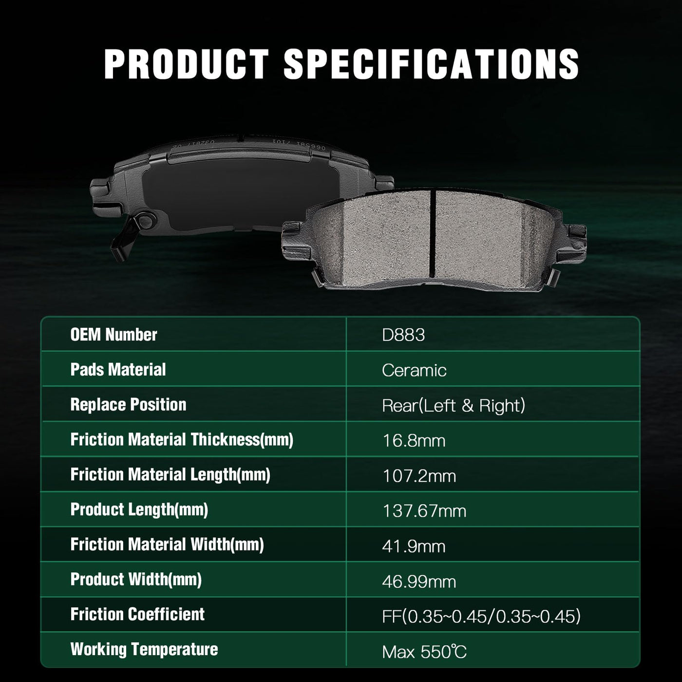 Automuto 8Pcs Front & Rear Disc Brake Pads Set D883 D882 For Buick Rainier For Chevrolet Ssr Trailblazer Trailblazer Ext For Gmc