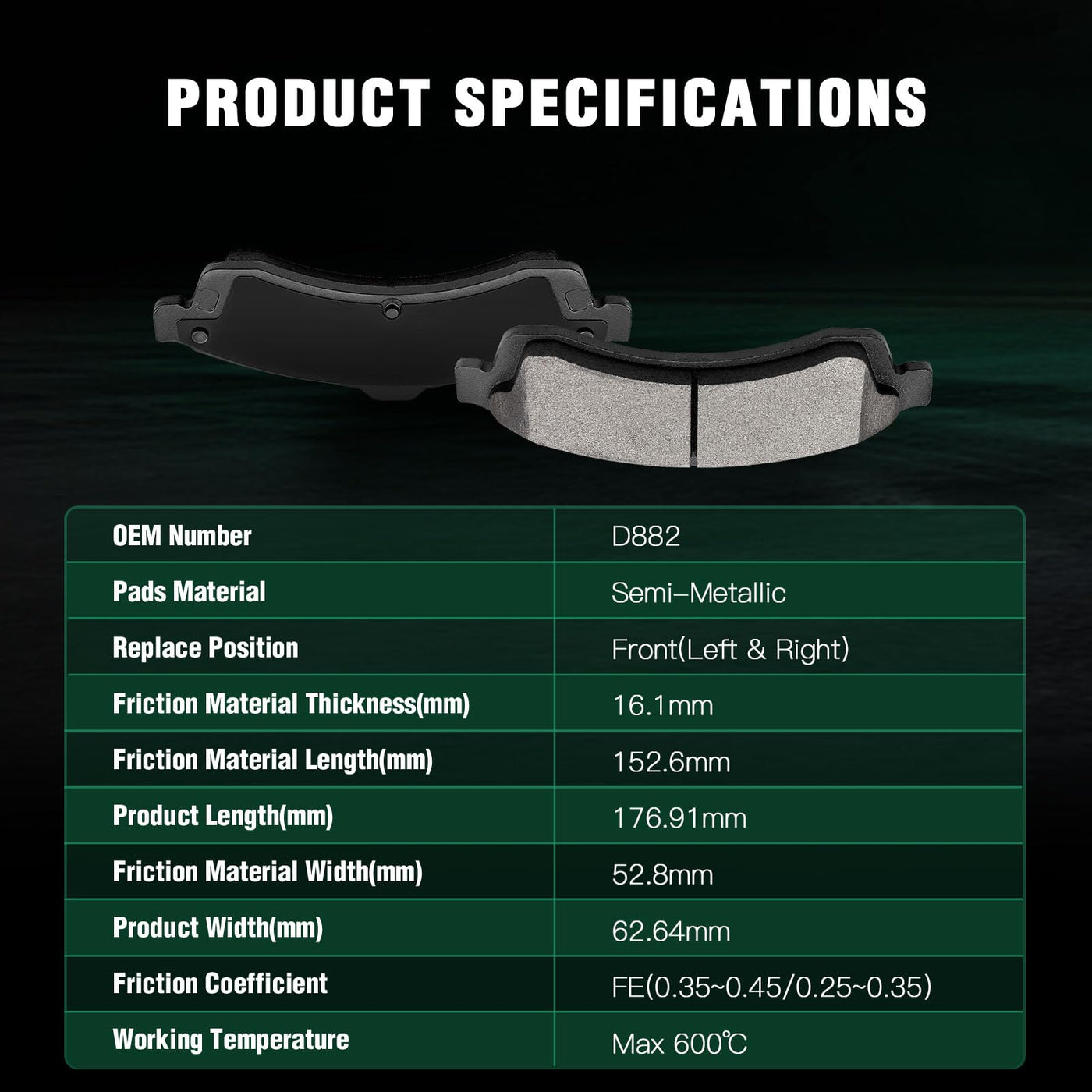 Fits:2004-2005 For Buick Rainier 4.2L2004-2005 For Buick Rainier 5.3L2003-2004 For Chevrolet SSR 5.3L2005 For Chevrolet SSR 6.0L2002-2005 For Chevrolet Trailblazer 4.2L2002-2005 For Chevrolet Trailblazer EXT 4.2L2003-2005 For Chevrolet Trailblazer EXT 5.3L2002-2005 For GMC Envoy 4.2L2005 For GMC Envoy 5.3L2002-2005 For GMC Envoy XL 4.2L2003-2005 For GMC Envoy XL 5.3L2004-2005 For GMC Envoy XUV 4.2L2004-2005 For GMC Envoy XUV 5.3L2003-2005 For GMC Jimmy 4.3L2003-2008 For Isuzu Ascender 4.2L2003-2006 For Isuzu Ascender 5.3L2002-2004 For Oldsmobile Bravada 4.2L2005 For Saab 9-7x 4.2L2005 For Saab 9-7x 5.3LSpecifications:1)Placement on Vehicle:Front & Rear2)Brake Pad Material:Semi-Metallic-Front Left and RightCeramic-Rear Left and Right3)OEM Part Numbers:ATD882C,D882-7759-Front Left and RightATD883C,D883-7760-Rear Left and RightPackage Including:8*Disc Brake Pads Set