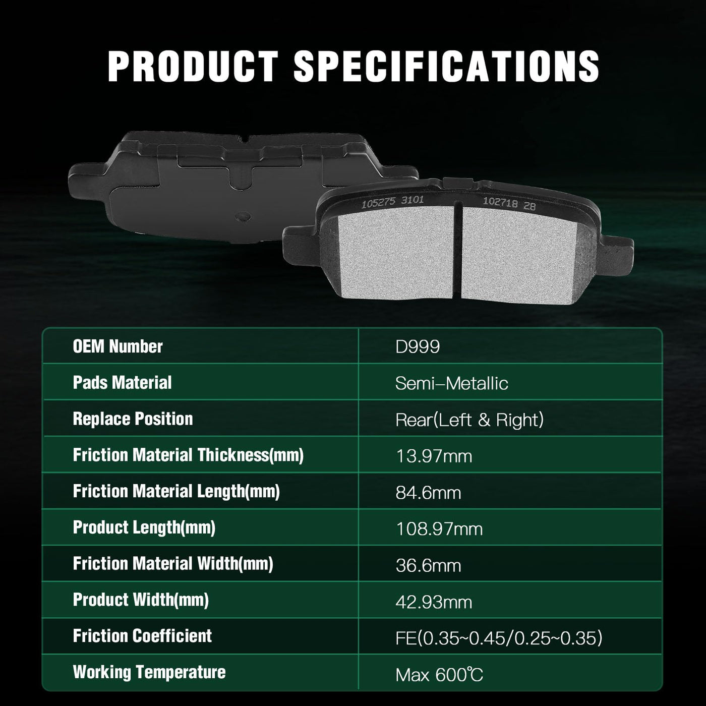 Automuto 8Pcs Front & Rear Disc Brake Pads Set D999 D1159 For Buick Allure 2009,For Buick Lacrosse 2009,For Chevrolet Impala 201