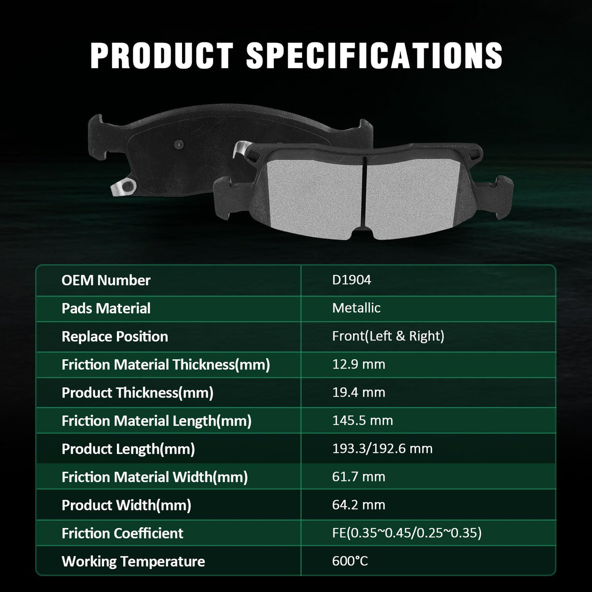 Automuto 8Pcs Front & Rear Metallic/Semi-Metallic Disc Brake Pads Set D1904 D1498 For Dodge For Durango 2011-2022,For Jeep Grand