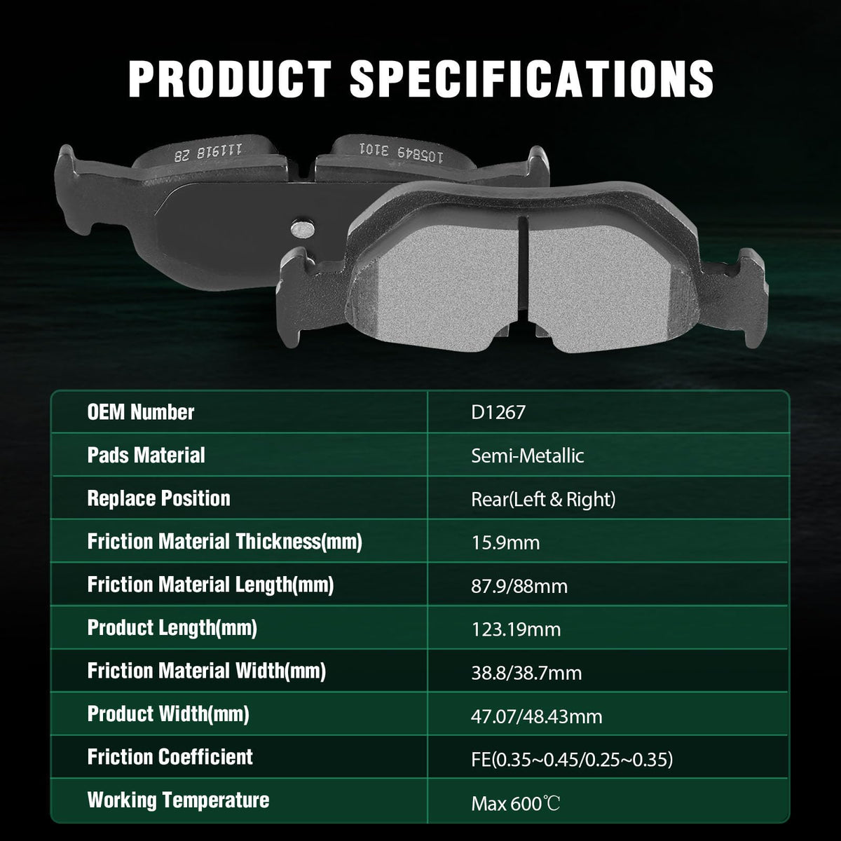 Automuto 8Pcs Front & Rear Semi-Metallic Disc Brake Pads Set D1267 D918 For Bmw 328I 2007-2013,For Bmw 328I Xdrive 2009-2013,For