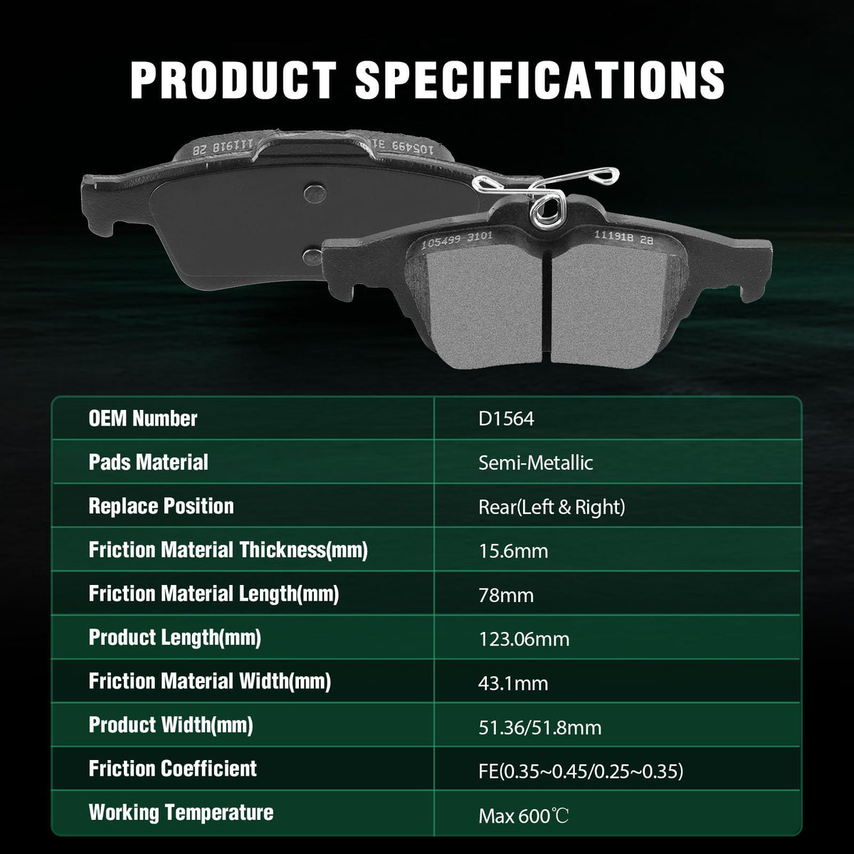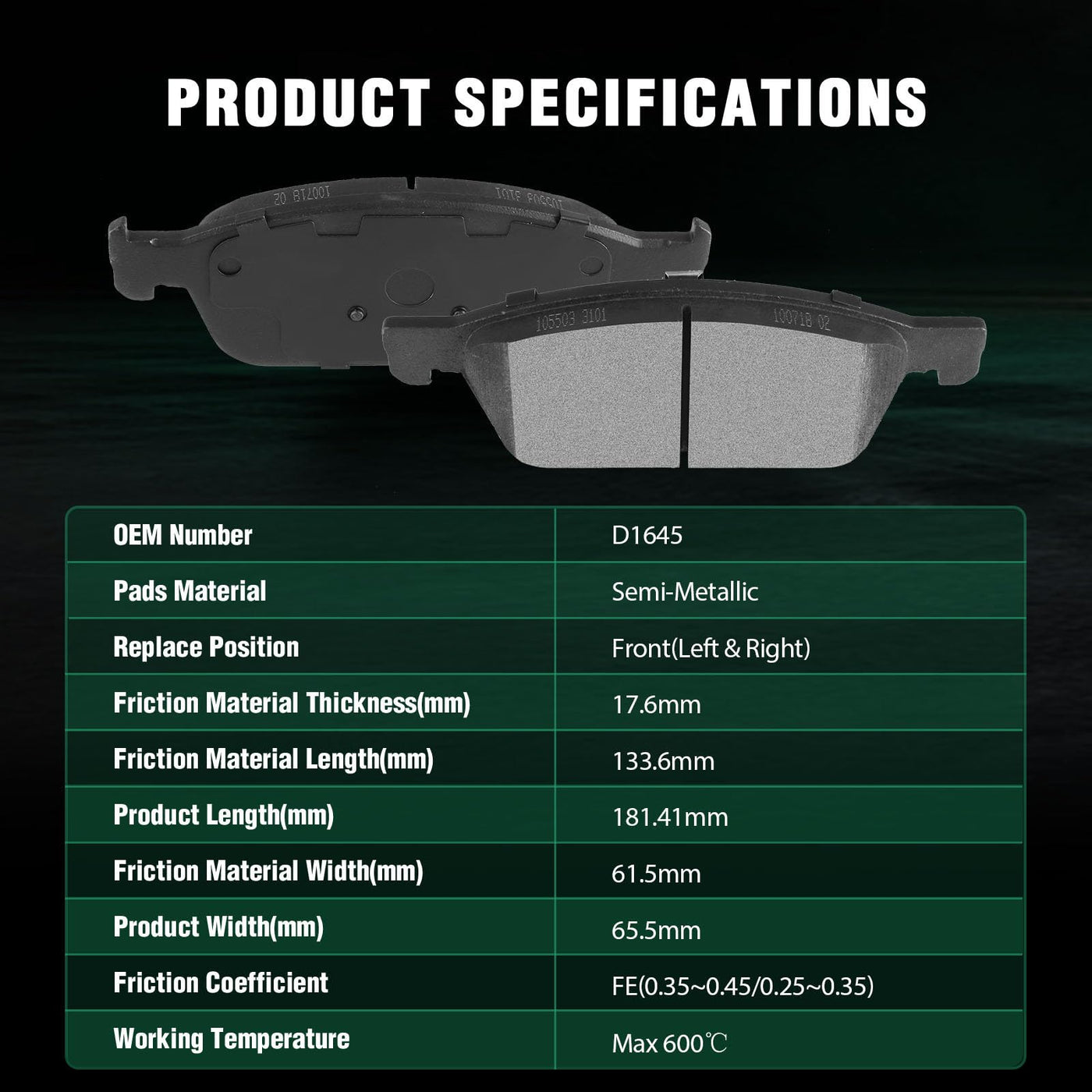 Automuto 8Pcs Front & Rear Semi-Metallic Disc Brake Pads Set D1564 D1645 For Ford Escape 2013-2016, Focus 2013-2018, Transit Con