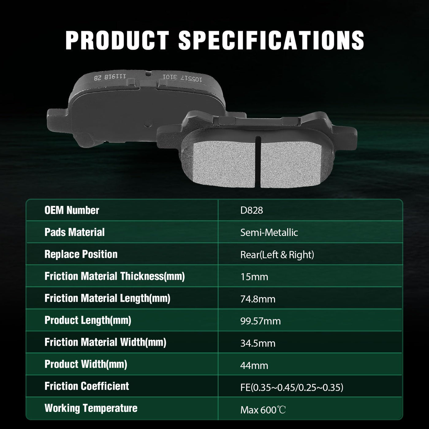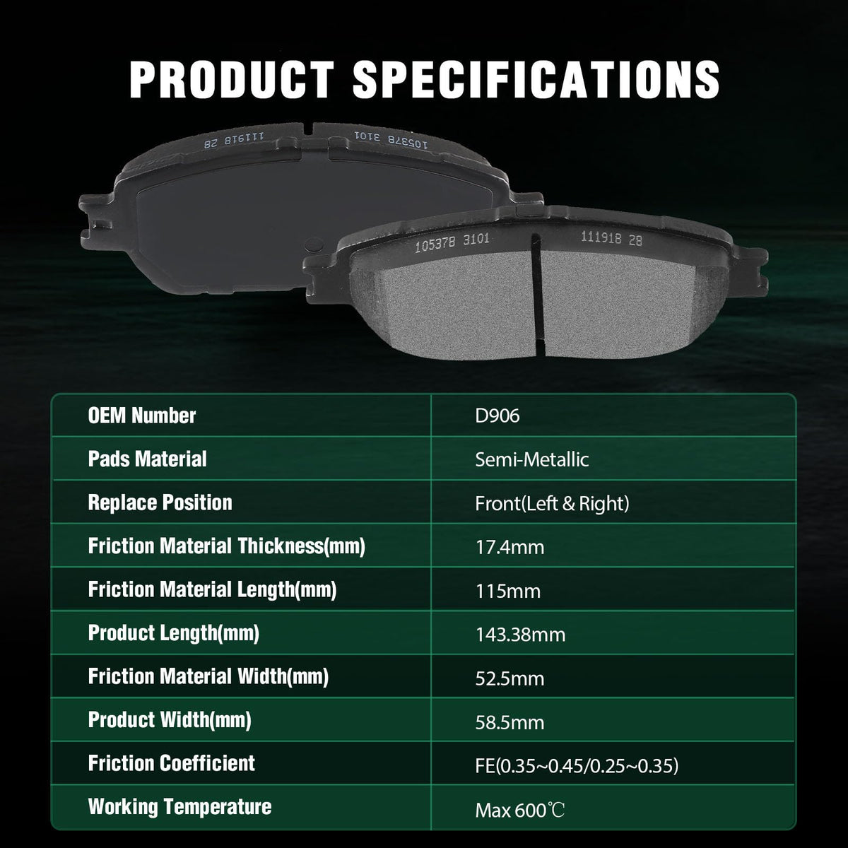 Automuto 8Pcs Front & Rear Semi-Metallic Disc Brake Pads Set D828 D906 For Toyota Avalon 2005-2007, For Camry 2005-2006, For Sol
