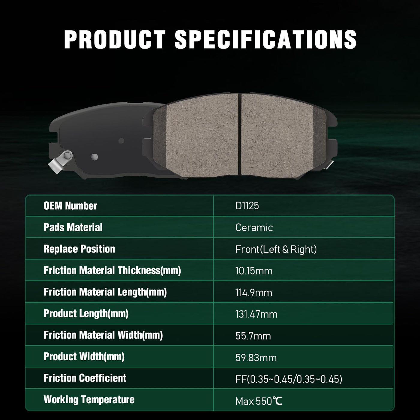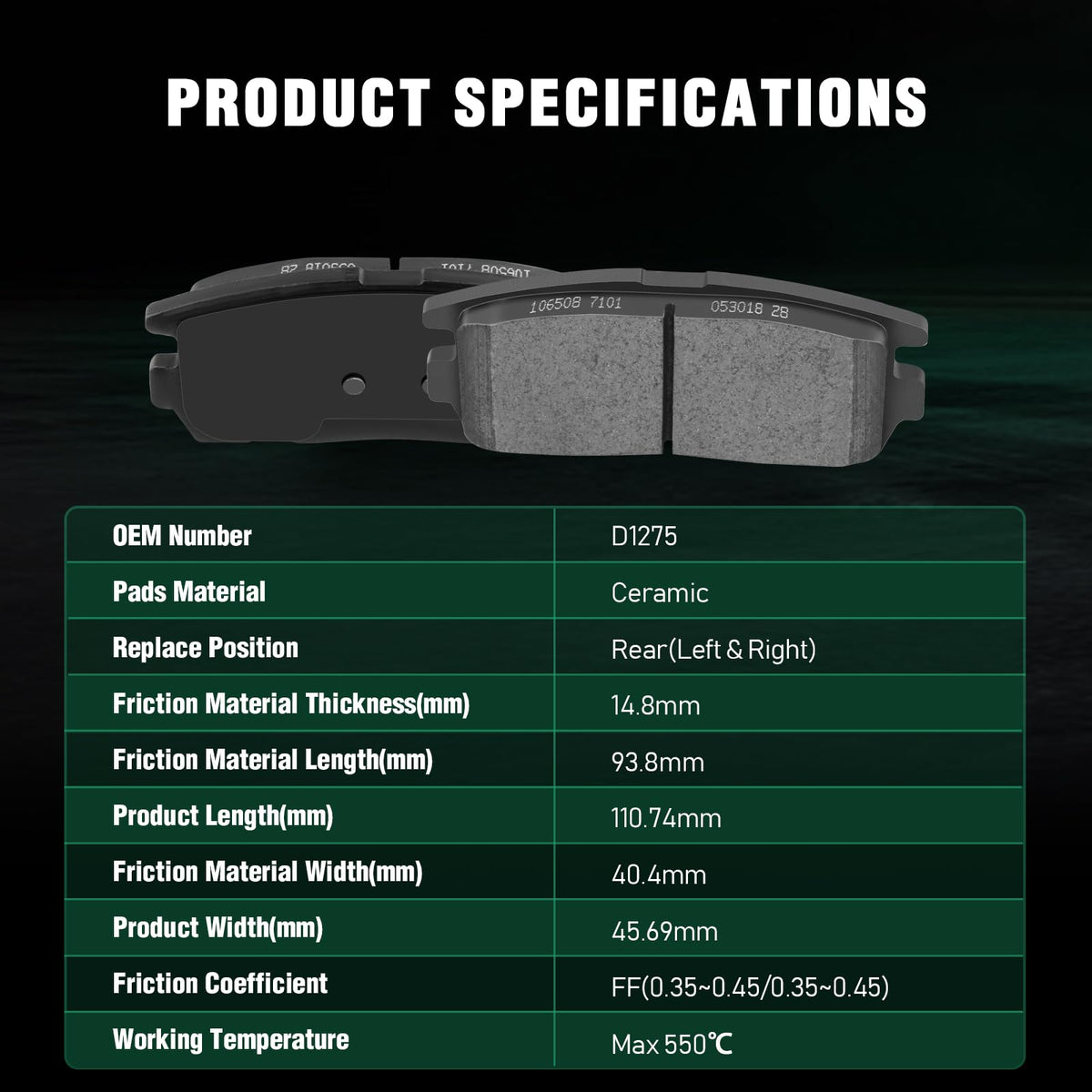 Automuto D1125 & D1275 Ceramic Brake Pads Kits, Front Rear 8Pcs Brake Pads Set Fit For 2010-2017 For Chevrolet Equinox,2010-2017