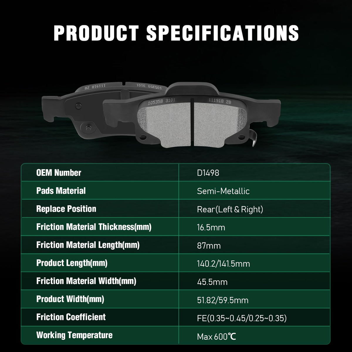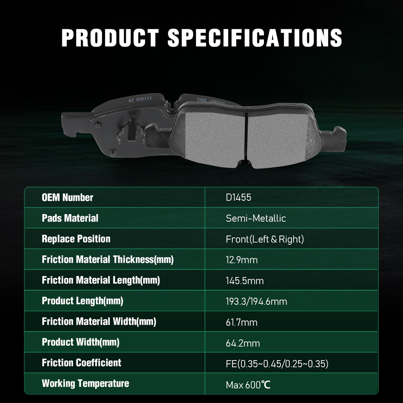 Automuto D1455 & D1498 Brake Pads Kits, Front Rear 8Pcs Disc Brake Pads Set For 2011-2018 For Dodge Durango, 2011-2019 For Jeep