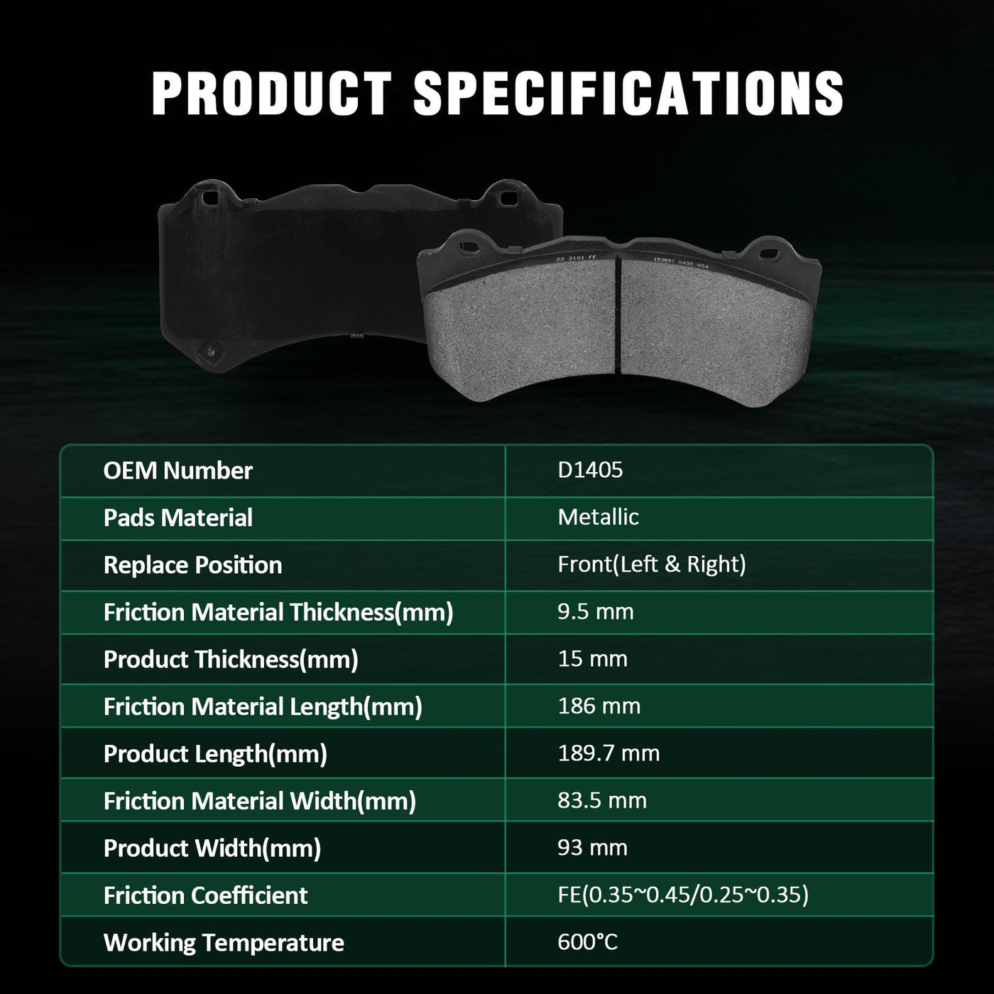 Automuto Front Brake Pads D1405 For Cadillac Ats 16-19,For Chevrolet Camaro 12-15 17-21,For Dodge Challenger 13-20/Charger 12-20