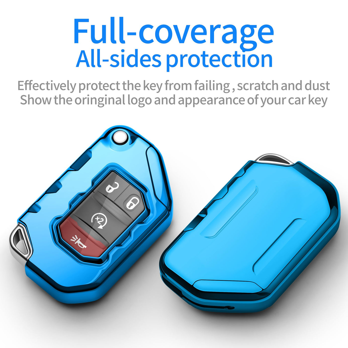 【Attention Please】Because even if the type of the car is the same, the car key might be different based on the different year of manufacturing, so please Double Check your Key Fob with the picture at left before Purchasing. | 【Compatible with 】2018 2019 2020 2021 Wrangler Sahara JL Gladiator Ect Model. | 【Material】Made with premium TPU. Super thin, soft, trending looking and pretty durable. Make your key fob look new and premium. Genuine Leather key chain keeps your keys from being lost, making it easy to carry around, suitable for both men and women. | 【Design】Full protection of back and forth, left and right. It can effectively protect your car key from falling, shock, scratch and dust.The small key pops out freely. | 【Worry free after sale】Unconditionally refund or free replace if any defective or quality problems any problem ,please feel free to contact us, we offer life-time friendly customer service.