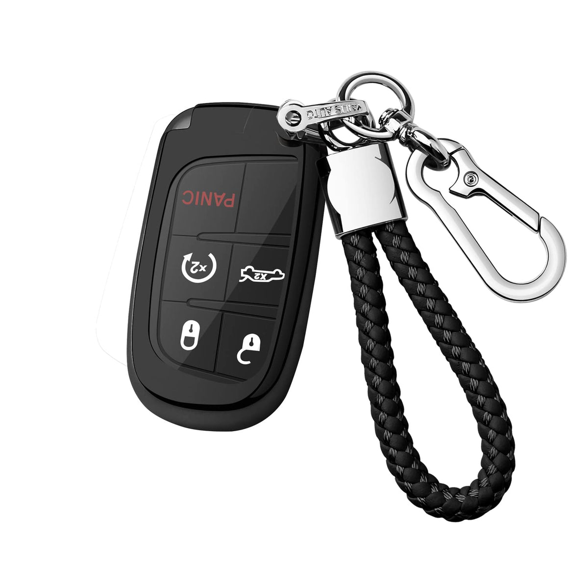 Autophone Compatible With Jeep Key Fob Cover With Leather Keychain Soft Tpu Protection Key Case For Dodge Charger Challenger Dart Journey Durango Grand Caravan Ram Fiat Smart Key,Black