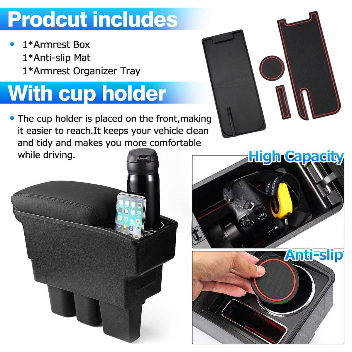 Q: Can the storage box help keep my car organized?A: Absolutely! The built-in storage space and cup holder allow you to store personal items and keep them organized, making it an essential accessory to maintain a clean and tidy vehicle.