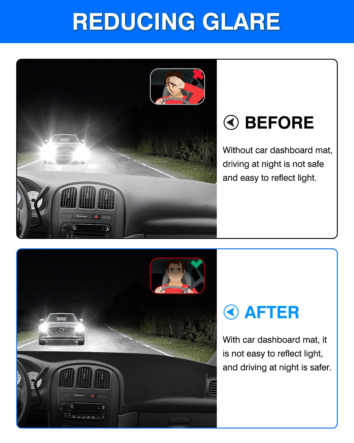 Q: Will the dashboard cover mat reduce glare while driving?A: Yes, the Autorder dashboard cover is designed to help reduce sun glare from the dashboard, enhancing your driving experience by providing better visibility and comfort.