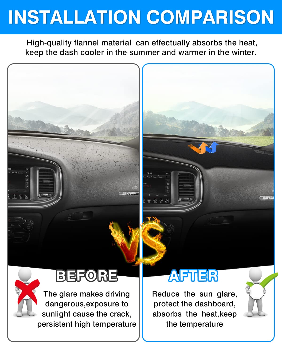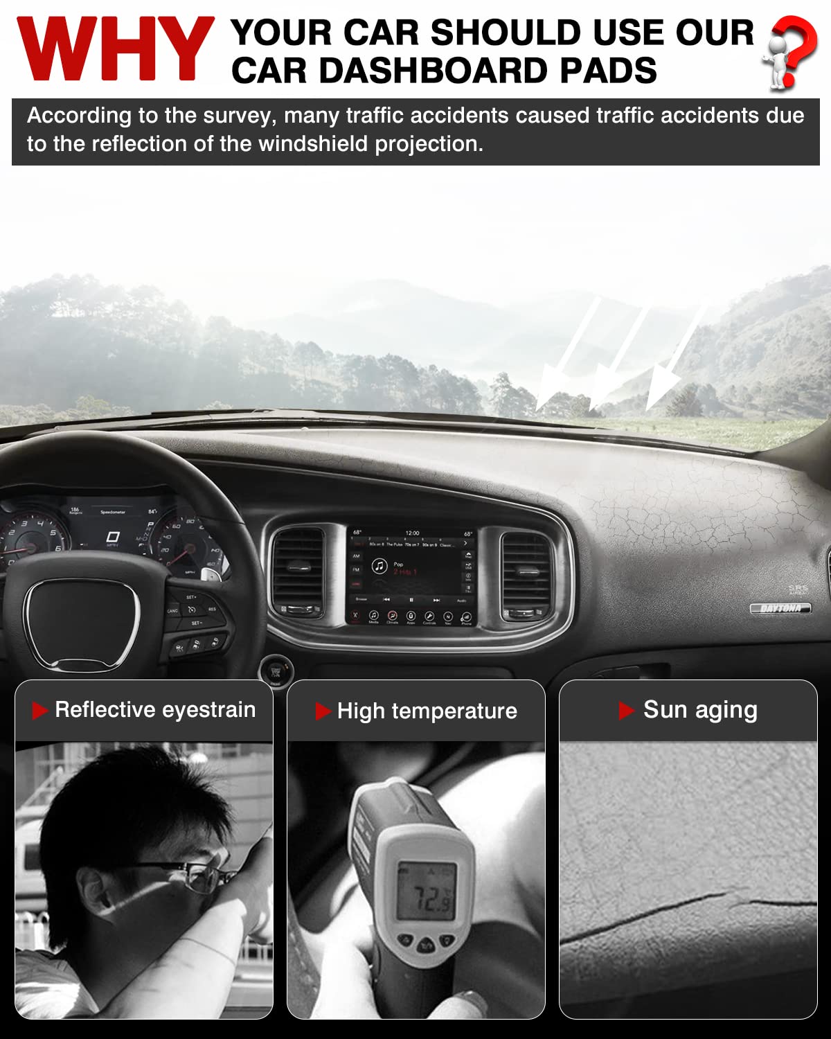 Autorder Dashboard Cover Mat For 2011-2023 Dodge Charger Accessories Dash Cover Flannel Dash Mat Sunshade Glare Uv Rays Protecto