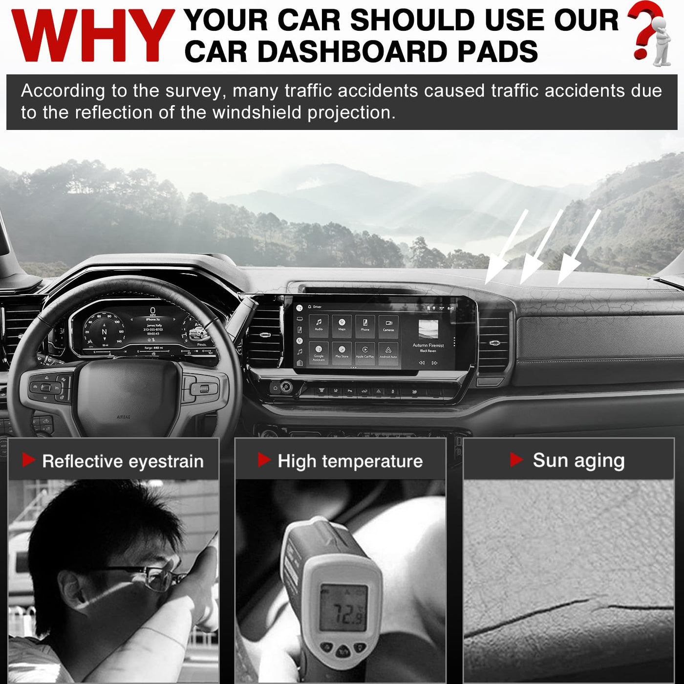 Autorder Dashboard Cover Mat For 2022-2025 Chevrolet Silverado Accessories Dash Cover Upgrade Velvet Dash Mat Sunshade Glare Uv