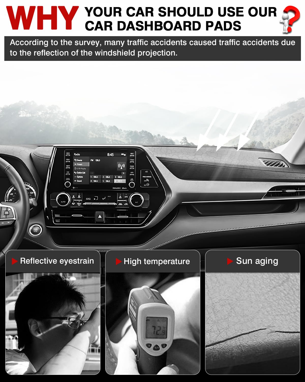 Autorder Dashboard Cover Mat for Toyota Highlander 2020 2021 2022 2023 2024 2025 Accessories Dash Cover Flannel Dash Mat Sunshad