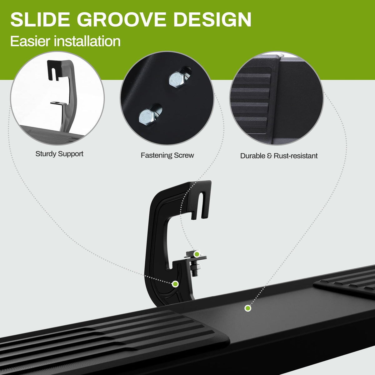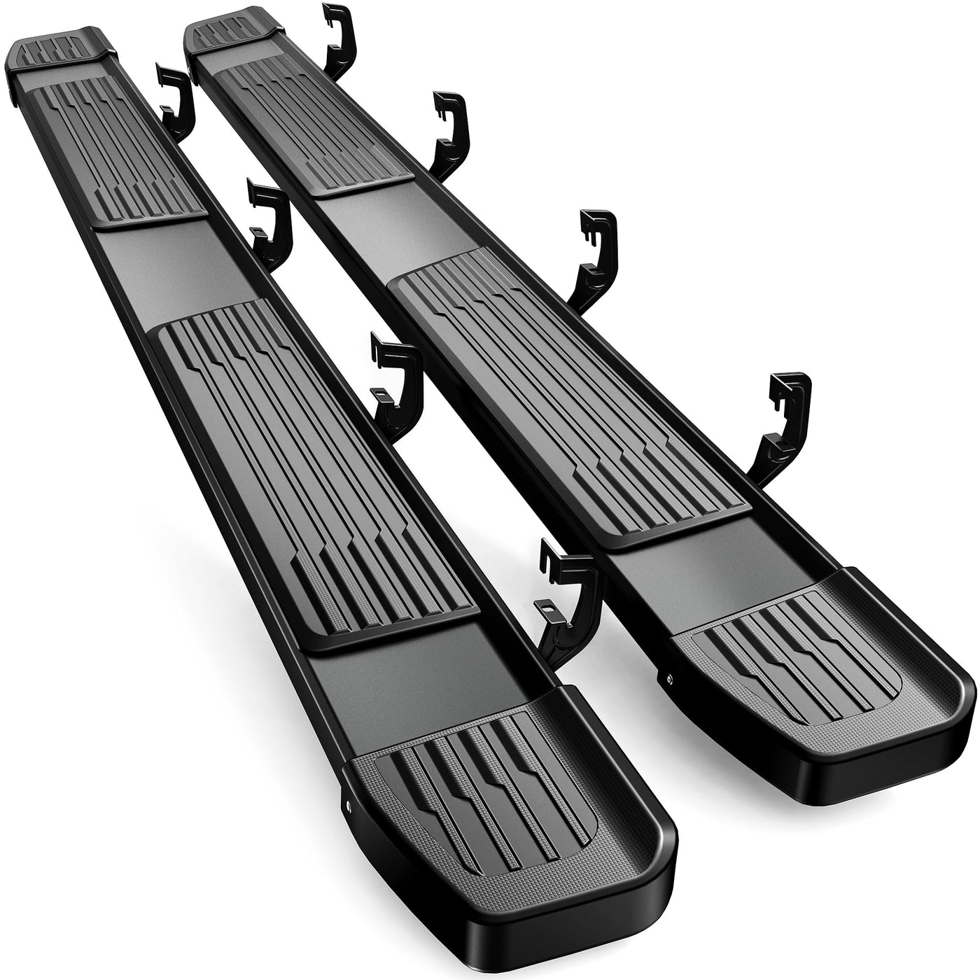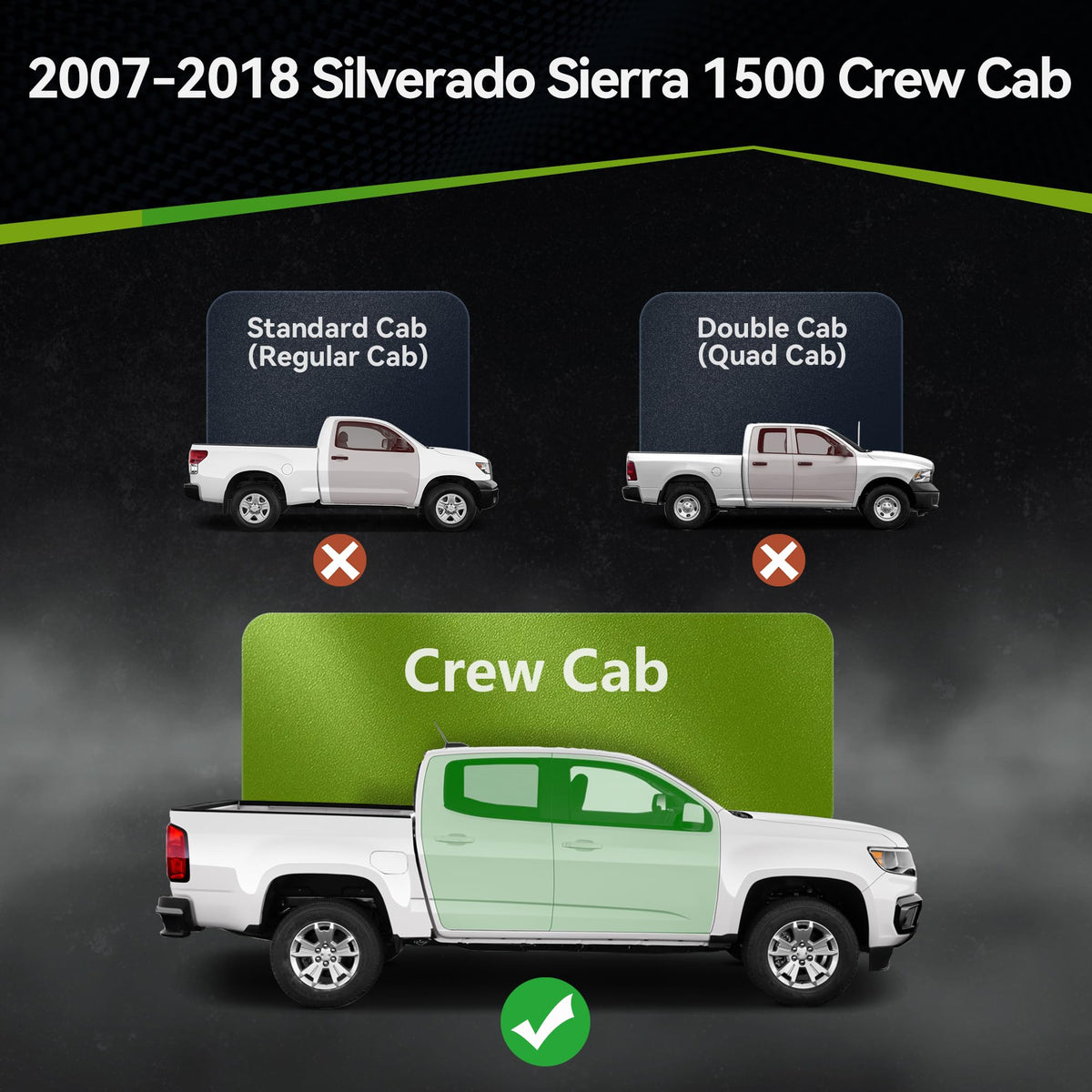 Fitment- Truck running boards for Silverado crew cab compatible with 2007-2018 Chevrolet Silverado & GMC Sierra 1500, 2007-2019 2500 HD 3500 HD Crew Cab. Not suitable for Diesel models. Please check the cab size picture if you are unsure of your exact model | Stylish Design: 6-inch wide side steps area are long enough to help those who have trouble getting in and out of the trucks easily. The anti-slip step pads add a sleek, modern look to your vehicle, making it more noticeable on the road | Practical Design: Running boards for Chevy Silverado are made from high quality rust-resistant stainless steel, unique ABS plastic covers to protect the edges. With excellent corrosion resistance, durability, and support up to 450 pounds on each side | Protection Functionality: Autosaver88 running boards help protect your vehicle's exterior from scratches, dents and other debris or damage from minor accidents | Durability: Easy bolt-on installation with no drilling required. The black powder-coated finish withstands all weather conditions and daily wear and tear, ensured rust resistance, long-term durability and an aggressive appearance