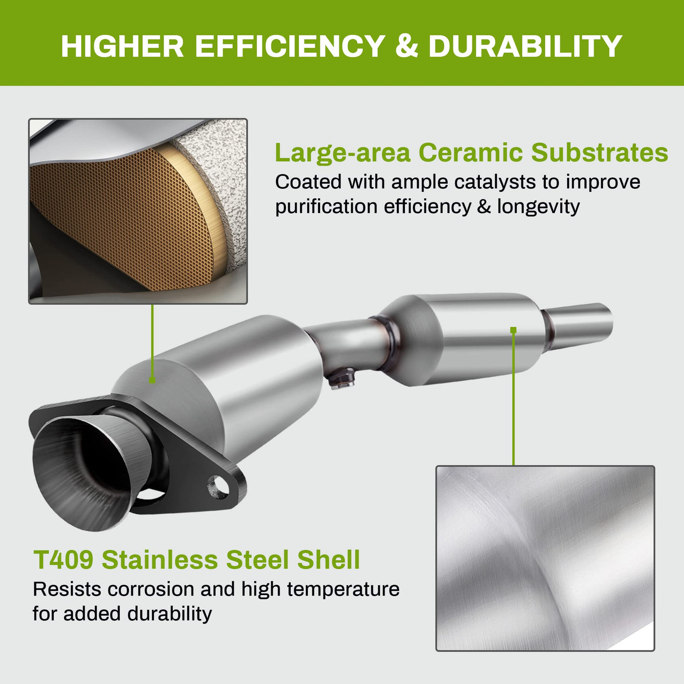 Q: What materials are used in the construction of the AUTOSAVER88 Catalytic Converter?A: The catalytic converter features a heavy-duty T409 stainless steel shell, which offers excellent resistance to heat, rust, and corrosion, ensuring a longer service life.