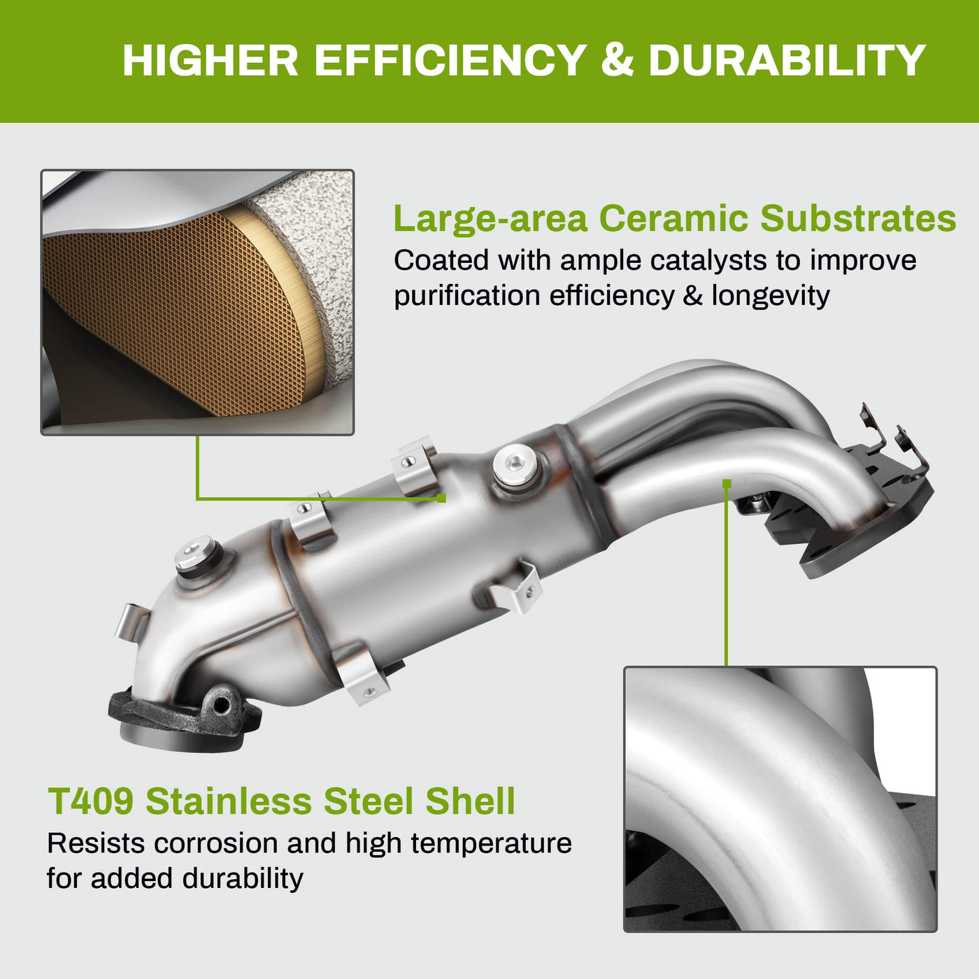 Q: What materials is the AUTOSAVER88 Catalytic Converter made from?A: This catalytic converter features a heavy-duty T409 stainless steel shell, which provides excellent resistance to heat, rust, and corrosion, ensuring a longer service life.