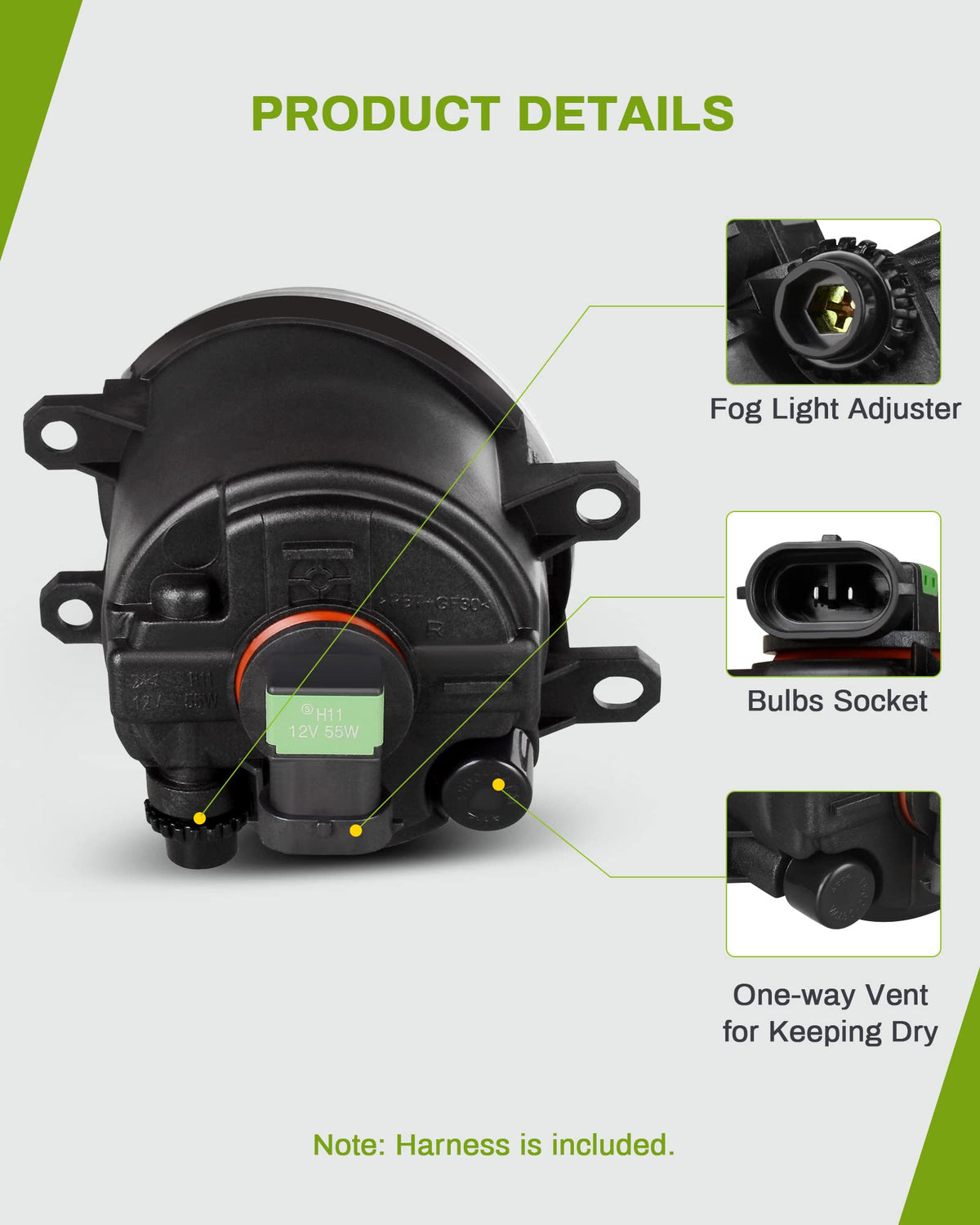 Autosaver88 Fog Lights Compatible With 16-18 2016 2017 2018 Rav4 Fog Light Replacement,With 12V 55W H11 Bulbs,Wiring Harness And