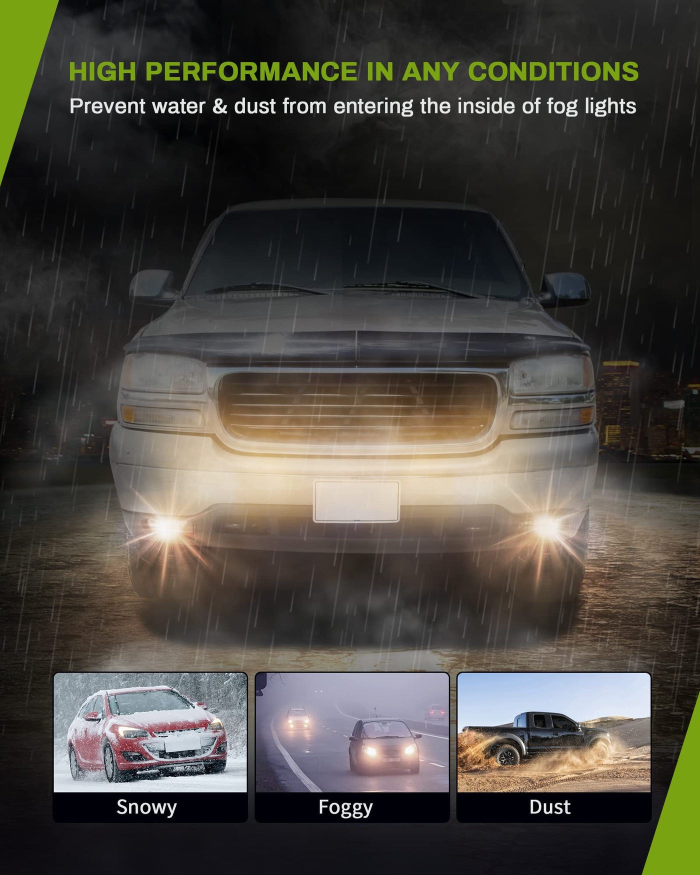 Q: What are the features of the AUTOSAVER88 Fog Lights?A: These fog lights offer enhanced visibility and safety with strong penetration power, making your vehicle more visible in low light or inclement weather. They are waterproof, featuring a sealed housing to protect against water and dust, and are made from heavy-duty polycarbonate material that resists high impact and UV damage.