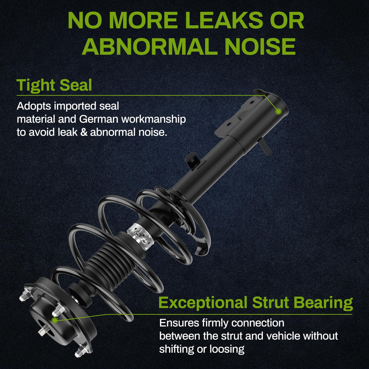 Vehicle compatibility: The pair of quick struts is compatible with 2007-2012 Dodge Caliber, 2007-2014 Compass (Mk) FWD And [4WD Without Off-Road Package], 2007-2014 Patriot (Mk) FWD And [4WD Without Off-Road Package]. Please check description page for reference | Safe & simple installation: Features buckle holes that correspond with existing ones in the vehicle, so it can be easily replaced without disassembling previous strut structure | Up to standard: Complete package includes struts, coil springs (if needed), mount, boot, bumper kit, spring seat, and isolator. All components are built to meet performance requirements | Replacement part numbers: 172367, 172368, 172401 | Existing struts should be replaced if your vehicle: 1) makes abnormal sounds, 2) dips when carrying heavy loads or driving on poor roads, 3) suffers leakage, 4) suffers tire wear, 5) is difficult to control, 6) has poor stability(NOTE: Professional installation would be highly recommended)
