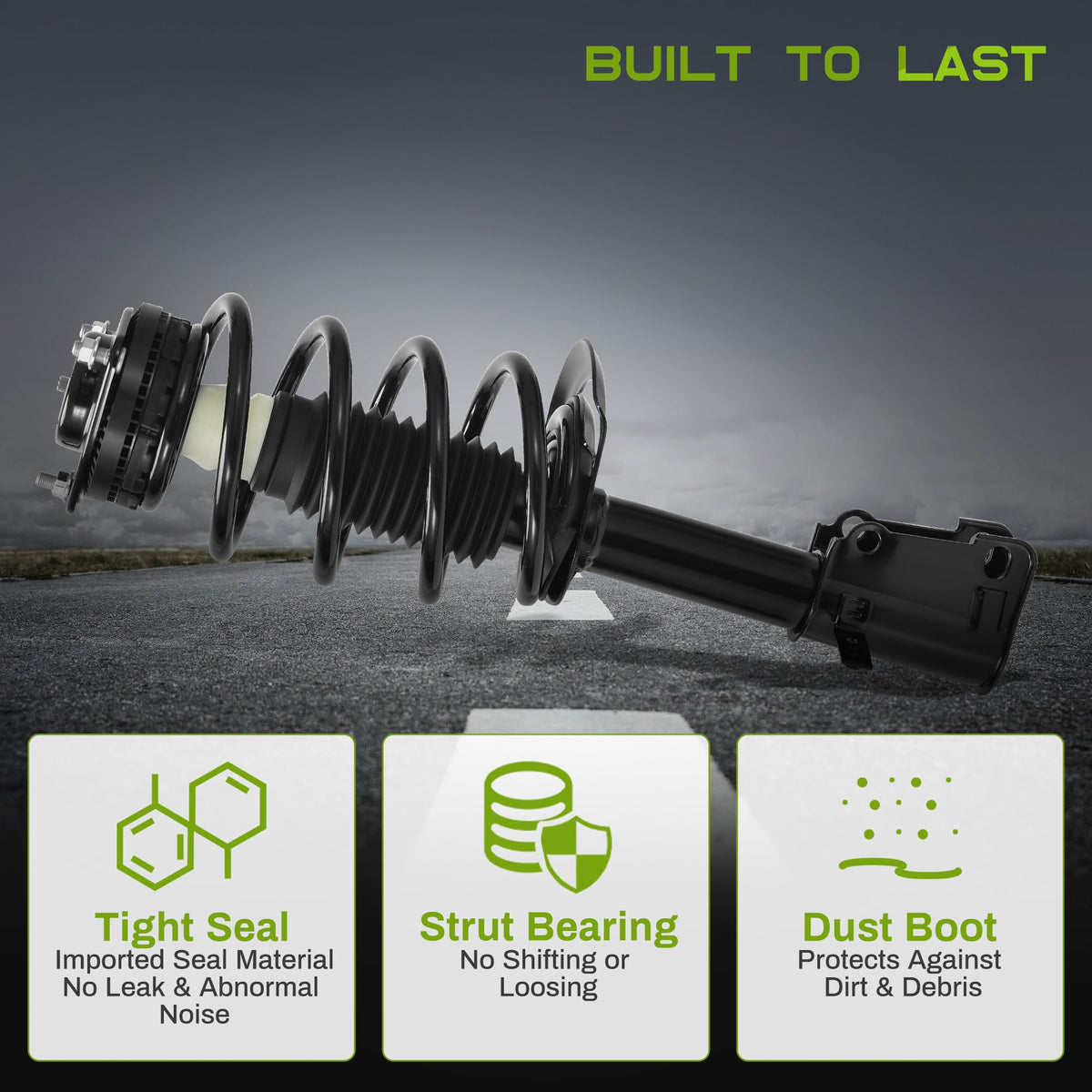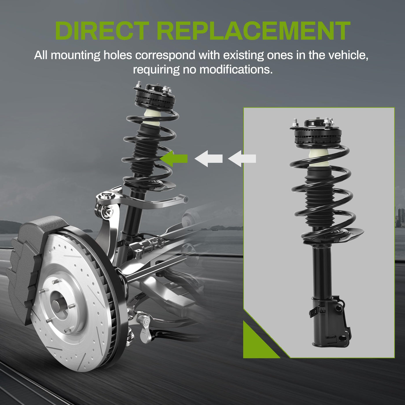 Vehicle Compatibility: The pair of front quick struts is compatible with 2008-2010 Dodge Avenger 2.7L, 2011-2014 Dodge Avenger 3.6L, 2011-2014 Chrysler 200 2.4L Sedan, 2007-2010 Chrysler Sebring 2.7L/3.5L Sedan | Safe & Simple Installation: Features buckle holes that correspond with existing ones in the vehicle, so it can be easily replaced without disassembling previous strut structure | Up to standard: Complete package includes struts, coil springs (if needed), mount, boot, bumper kit, spring seat, and isolator. All components are built to meet performance requirements | Replacement Part Numbers: 271131, 271130 | Existing struts should be replaced if your vehicle: 1) makes abnormal sounds, 2) dips when carrying heavy loads or driving on poor roads, 3) suffers leakage, 4 suffers tire wear, 5) is difficult to control, 6) has poor stability(NOTE: Professional installation would be highly recommended)