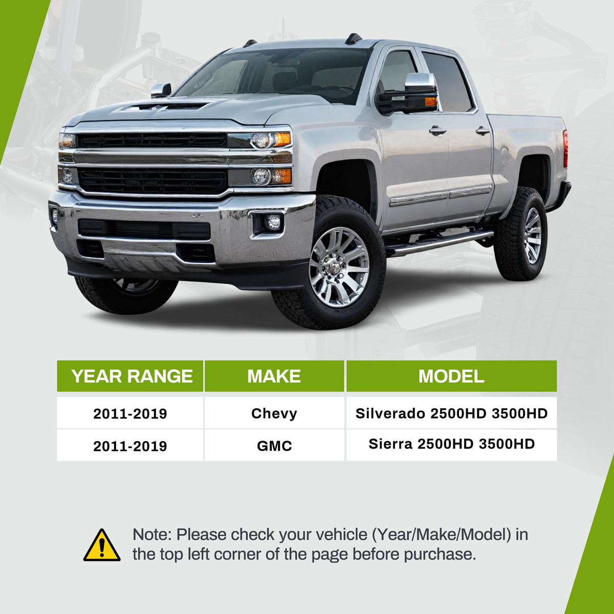 Vehicle Fitment:For 2011-2019 Chevy Silverado 2500Hd 3500Hd,2011-2019 Gmc Sierra 2500Hd 3500Hd.Please Confirm Your Vehicle Details By Vin, And Check Your Vehicle In The Fitment Filter System | Package Content: 11Pcs.2X Front Upper Control Arms W/Ball Joints,2X Front Lower Ball Joints,2X Front Sway Bar Links,1X Idler Arm,2X Inner Tie Rod Ends,2X Outer Tie Rod Ends | Improve Ride Comfort: Pre-Installed Rubber Bushings Effectively Help Reduce The Road Noise And Vibration, Enabling You To Enjoy A Smooth And Controlled Ride During Cornering And Over Bumps | Manufactured To Strict Standards: E-Coating Adds Corrosion Protection And Promotes A Longer Service Life. The High-Strength Steel Body Makes It More Stable During Operation. All Parts Are Rigorously Tested To Provide Reliable Replacement | Installation Notes: The Suspension Kit Must Be Installed By Professionals Who Need To Carefully Read Important Instructions Shown In The Picture. Please Test In An Empty Area Before Getting Back On The Road