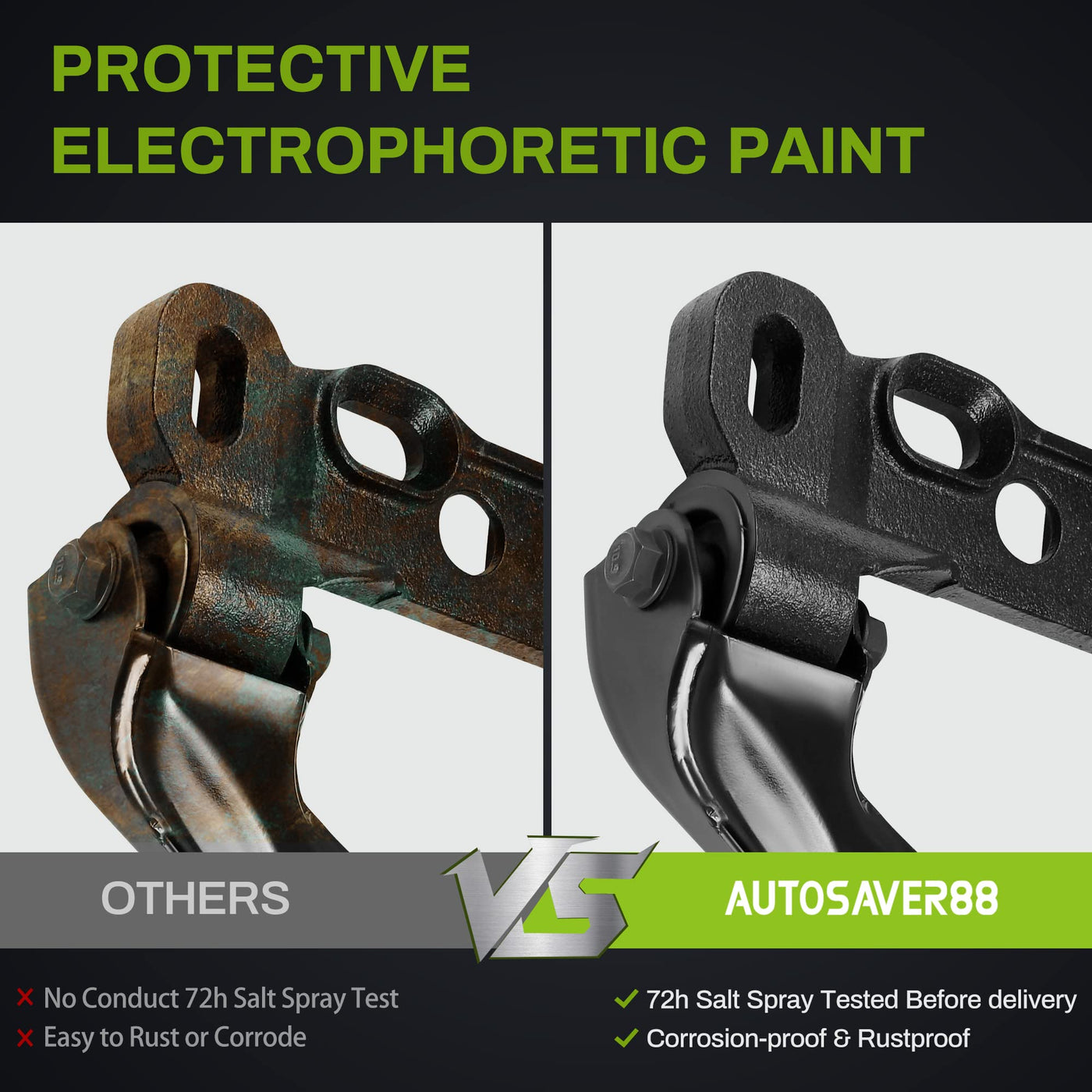 Vehicle fitment: : Please confirm your vehicle details by VIN, and check your vehicle in the fitment filter system before purchase | Package content: 1x Front lower control arm and bracket w/ball joint -Driver side and 1x Front lower control arm and bracket w/ball joint -Passenger side | Improve ride comfort: Pre-installed rubber bushings effectively help reduce the road noise and vibration, enabling you to enjoy a smooth and controlled ride during cornering and over bumps | Manufactured to strict standards: E-coating adds corrosion protection and promotes a longer service life. The high-strength steel body makes it more stable during operation. All parts are rigorously tested to provide reliable replacement | Installation notes: The suspension kit must be installed by professionals who need to carefully read important instructions shown in the picture. Please test in an empty area before getting back on the road