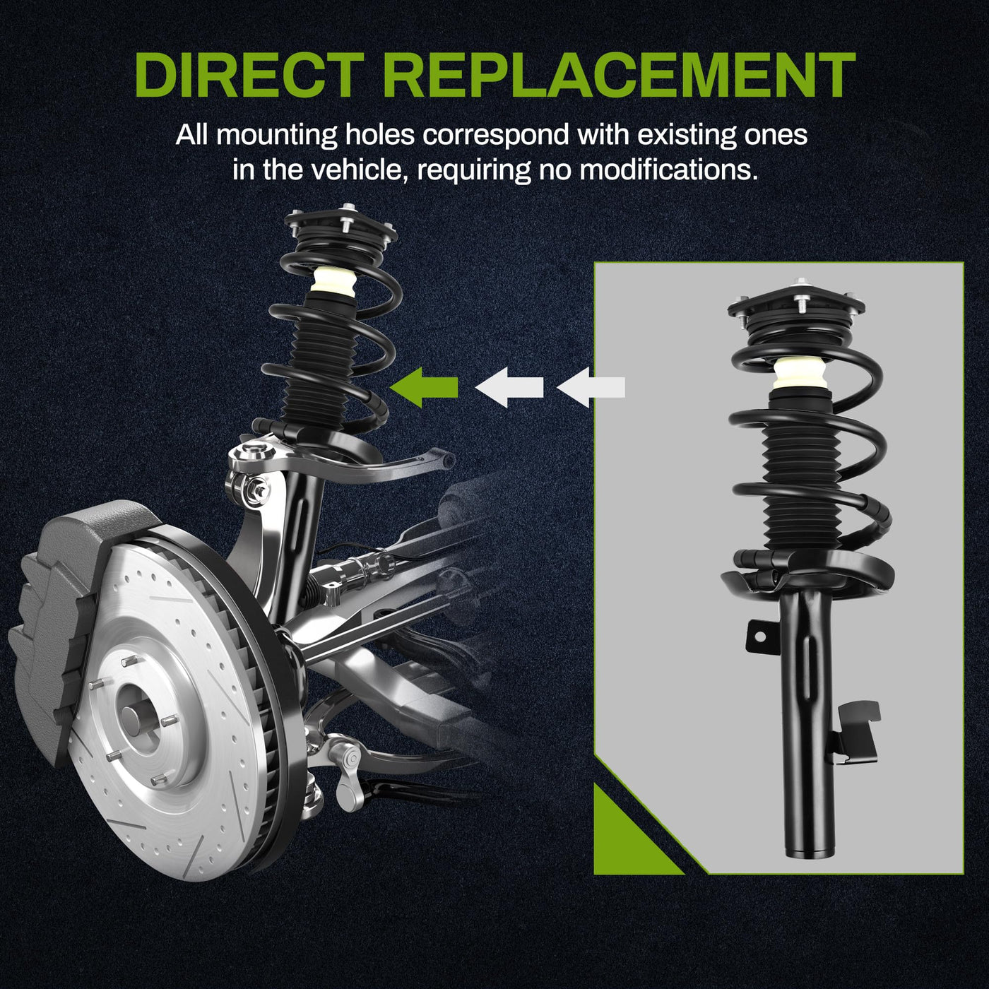 Vehicle Compatibility: The Pair Of Front Quick Struts Is Compatible With 2004 2005 2006 2007 2008 2009 Mazda 3, 20062007 2008 2009 2010 Mazda 5 | Safe & Simple Installation: Features Buckle Holes That Correspond With Existing Ones In The Vehicle, So It Can Be Easily Replaced Without Disassembling Previous Strut Structure | Up To Standard: Complete Package Includes Struts, Coil Springs (If Needed), Mount, Boot, Bumper Kit, Spring Seat, And Isolator. All Components Are Built To Meet Performance Requirements | Replacement Part Numbers: 172264, 172263, 343412 | Existing Struts Should Be Replaced If Your Vehicle: 1) Makes Abnormal Sounds, 2) Dips When Carrying Heavy Loads Or Driving On Poor Roads, 3) Suffers Leakage, 4) Suffers Tire Wear, 5) Is Difficult To Control, 6) Has Poor Stability(Note: Professional Installation Would Be Highly Recommended)
