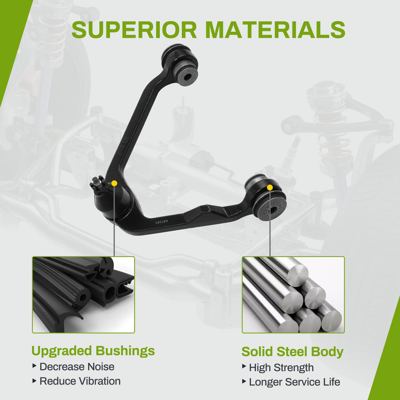 Vehicle Fitment: Fit Models With Rwd Only. Please Confirm Your Vehicle Details By Vin, And Check Your Vehicle In The Fitment Filter System | Package Content: 2X Front Upper Control Arm W/Ball Joint, 2X Front Outer Tie Rod End, 2X Front Inner Tie Rod End, 2X Tie Rod End Adjusting Sleeve, 2X Front Sway Bar End Link, 2X Front Lower Ball Joint, 1X Pitman Arm And 1X Idler Arm | Improve Ride Comfort: Pre-Installed Rubber Bushings Effectively Help Reduce The Road Noise And Vibration, Enabling You To Enjoy A Smooth And Controlled Ride During Cornering And Over Bumps | Manufactured To Strict Standards: E-Coating Adds Corrosion Protection And Promotes A Longer Service Life. The High-Strength Steel Body Makes It More Stable During Operation. All Parts Are Rigorously Tested To Provide Reliable Replacement | Installation Notes: The Control Arm Must Be Installed By Professionals Who Need To Carefully Read The Important Instructions Shown In The Picture. Please Test In An Empty Area Before Getting Back On The Road