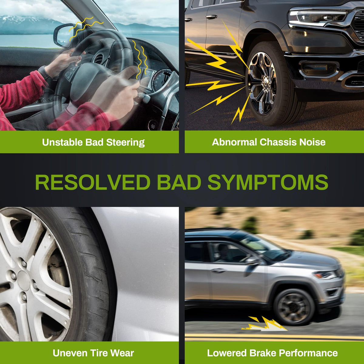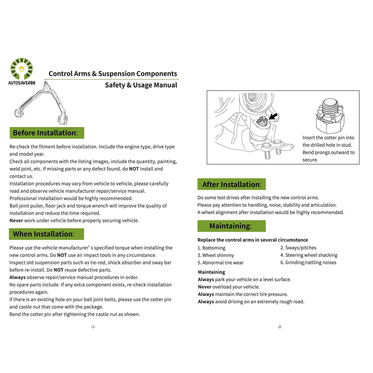 Vehicle Fitment: 6-Lug Models Only, w/Torsion Bar Suspension; Exclude Heavy Duty models. Please confirm your vehicle details by VIN, and check your vehicle in the fitment filter system | Installation Notes: The suspension kit must be installed by professionals who must pay attention to including but not limited to the installation note shown in the web page | Strictly Tested Before Delivery: All parts have conducted various rigid tests before delivery to ensure you receive high-performance, reliable automotive parts. The rigid professional tests include aging testing, endurance testing, hardness testing, etc | Rustproof & Corrosion-proof: In order to effectively prevent rust & corrosion and reduce wear, the front suspension kit adopts the pre-greased ball joints and protective electrophoretic paint. The superior steel body and rubber bushings buffer vehicle