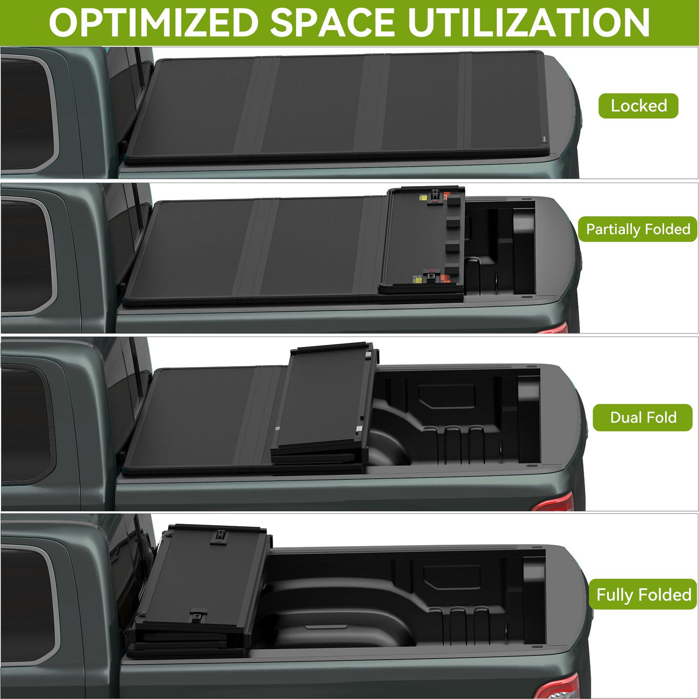 Tailored Fit & Style: Designed to fit for Chevy Silverado/GMC Sierra 2500 3500 HD 2020-2025 models with a 6.9ft bed without Multi-flex tailgate and Carbonpro Bed, Split Tailgate and Bed Track System, AUTOSAVER88 tonneau cover delivers a sleek, modern upgrade while enhancing your truck's utility | Expanded Cargo Access: Our quad-fold pickup bed cover offers extra flexibility compared to tri-fold alternatives - ideal for carrying camping gear, sports equipment, or groceries on all your adventures | Rugged Durability: Built for durability, this truck tonneau cover features heavy-duty aluminum alloy construction, supports heavy loads while shielding your cargo from harsh weather conditions | Easy to Install: Skip the drilling with this bed cover's quick clamp-on installation, which allows for installation in minutes with a flawless, no-damage fit - so you can start using your truck bed cover right away | Ultimate Weather Shield: Enjoy all-weather guard with this truck bed cover, protecting your cargo from rain, snow, dust, and theft, so your valuables can stay safe wherever you go