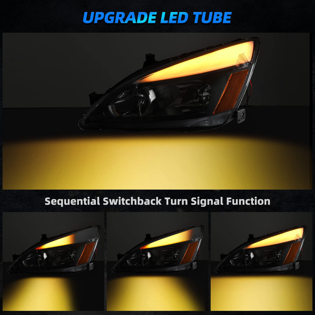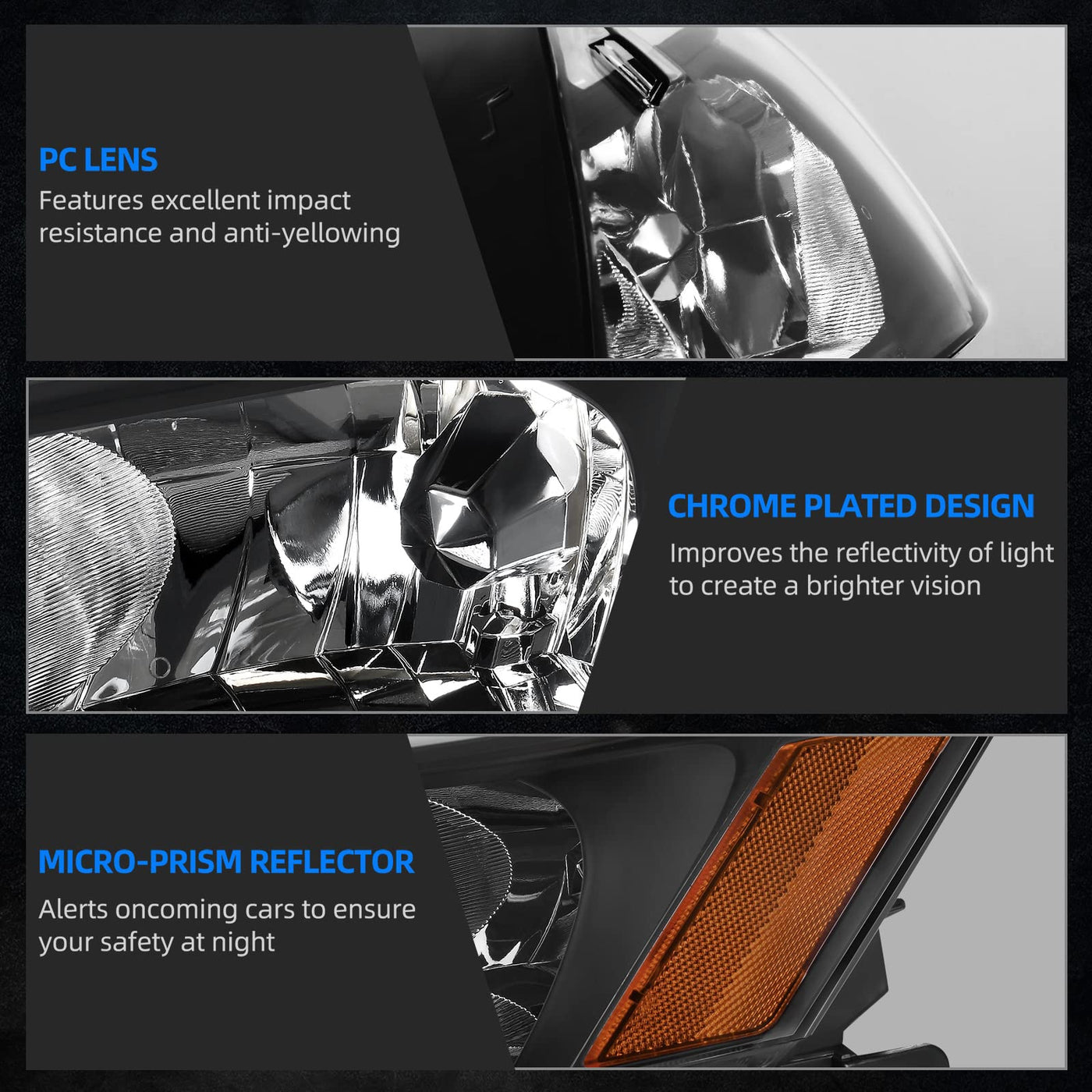 Vehicle compatibility: headlights assembly compatible with 2003 2004 2005 2006 2007 Accord; high beam mode 9005(HB3) and low beam mode 9006(HB4); bulbs are not included | Waterproof: fully sealed with solid silicon & designed with one-way vents to prevent moisture from being trapped inside the housing, no corrosion or moisture worries in sorts of weather conditions | Brighter lighting: the metallic parabolic reflectors provide more light output to create a broader and smoother beam | Safety reflector: the sided micro-prism reflector makes the oncoming cars or passerby quickly notice you at night, ensuring your driving safety and others' | Impact resistance: the polycarbonate lens & tough housing are highly resistant to shock, vibration for any tough road; professional installation would be highly recommended