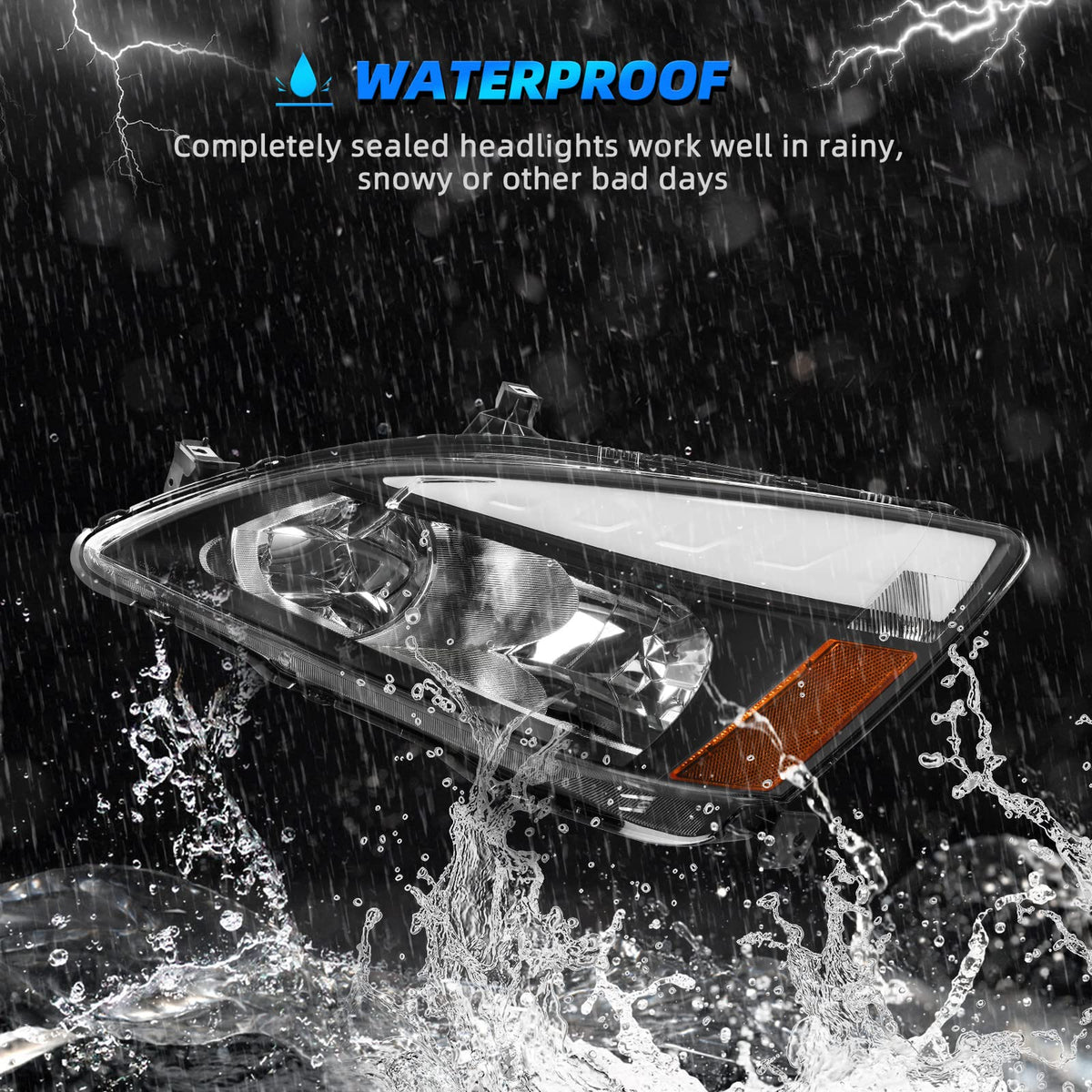 Q: Is the AUTOSAVER88 Headlight Assembly waterproof?A: Yes, this headlight assembly is fully sealed with solid silicon and features one-way vents to prevent moisture from being trapped inside the housing, ensuring durability in various weather conditions.