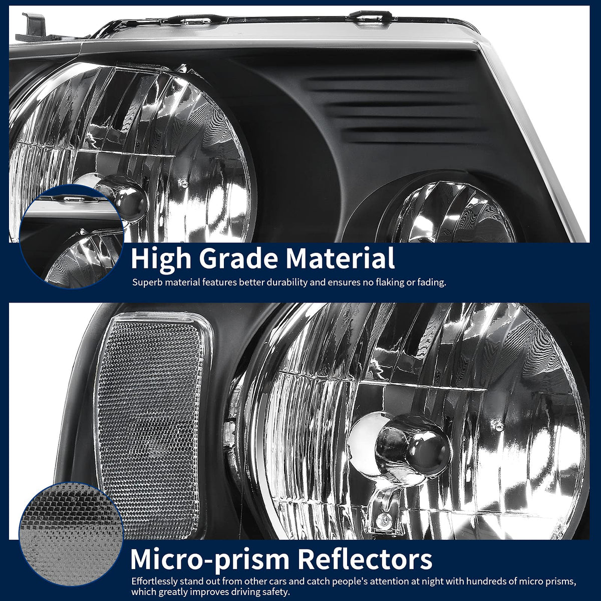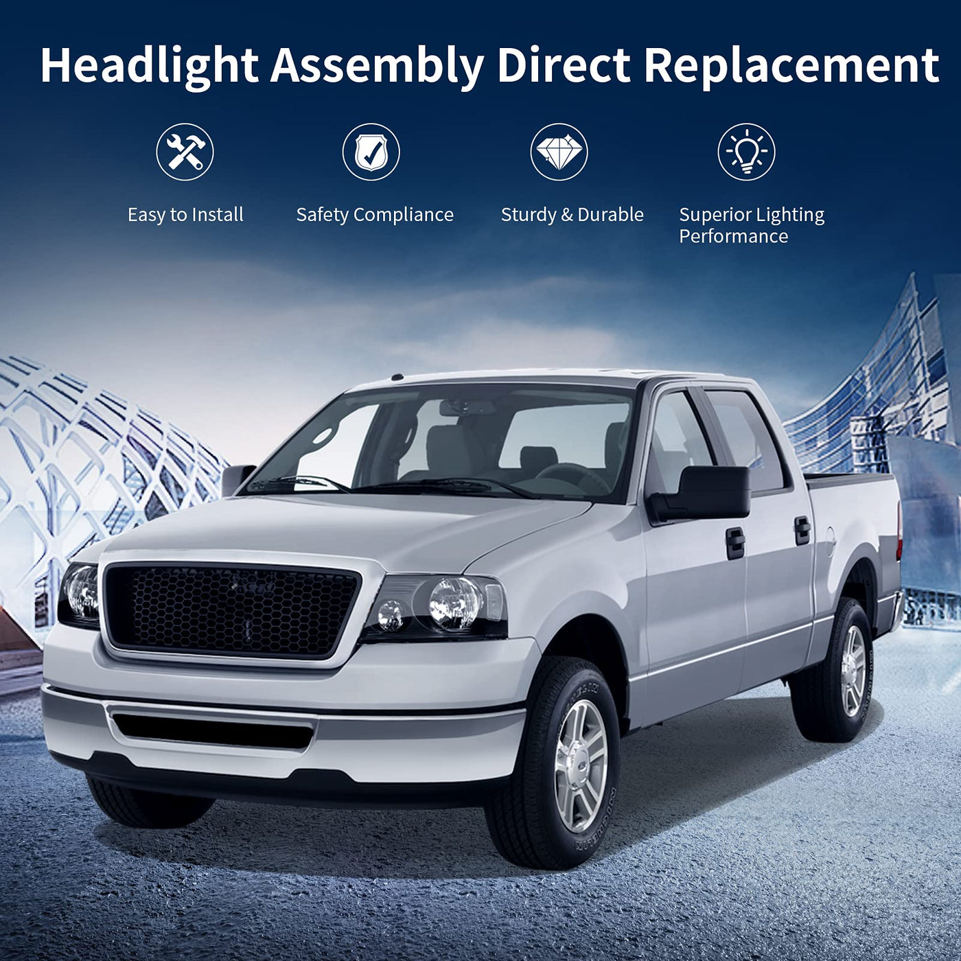 Vehicle compatibility: headlights assembly compatible with 2004 2005 2006 2007 2008 Ford F-150; not compatible with 2004 F150 Heritage; not compatible with Flareside Beds models,high/low beam: H13; bulbs are not included | Waterproof: fully sealed with solid silicon & designed with one-way vents to prevent moisture from being trapped inside the housing, no corrosion or moisture worries in sorts of weather conditions | Brighter lighting: the metallic parabolic reflectors provide more light output to create a broader and smoother beam | Safety reflector: the sided micro-prism reflector makes the oncoming cars or passerby quickly notice you at night, ensuring your driving safety and others' | Impact resistance: the polycarbonate lens & tough housing are highly resistant to shock, vibration for any tough road; professional installation would be highly recommended