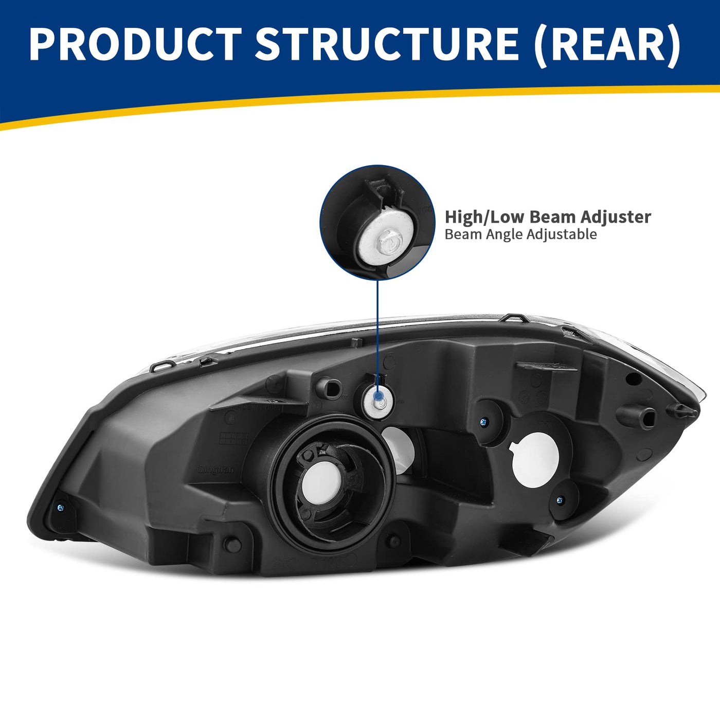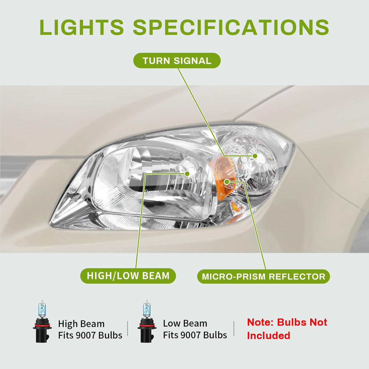 Vehicle compatibility: headlights assembly compatible with 2005-2010 Chevy Cobalt / 2005-2006 Pontiac Pursuit / 2007-2009 Pontiac G5; high beam/low beam bulb type: 9007; bulbs are not included | Waterproof: fully sealed with solid silicon & designed with one-way vents to prevent moisture from being trapped inside the housing, no corrosion or moisture worries in sorts of weather conditions | Brighter lighting: the metallic parabolic reflectors provide more light output to create a broader and smoother beam | Safety reflector: the sided micro-prism reflector makes the oncoming cars or passerby quickly notice you at night, ensuring your driving safety and others' | Impact resistance: the polycarbonate lens & tough housing are highly resistant to shock, vibration for any tough road; professional installation would be highly recommended
