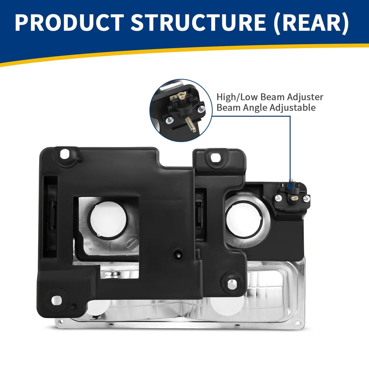 Q: How does the design of the headlight assembly improve visibility at night?A: The headlight assembly features a micro-prism reflector that enhances visibility by alerting oncoming vehicles, while the chrome-plated finish inside the headlights increases light reflectivity. Together, these features provide brighter illumination and a wider lighting angle for safer nighttime driving.
