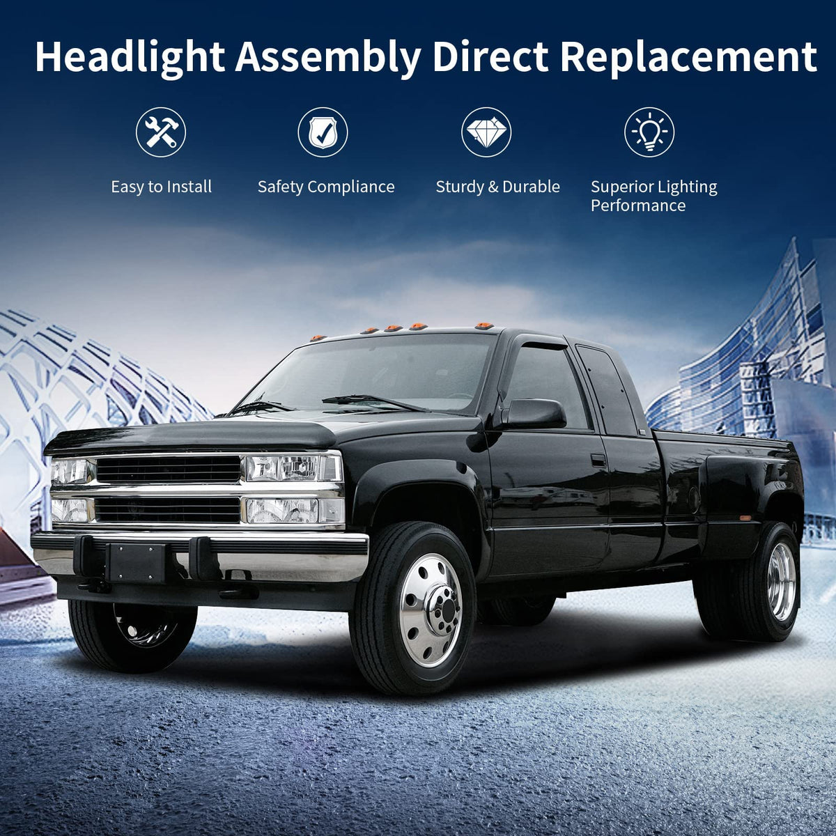 Q: What vehicles are compatible with the AUTOSAVER88 Headlight Assembly?A: The AUTOSAVER88 Headlight Assembly is compatible with various models including the 1990-1999 Chevy C/K Suburban, Silverado, Tahoe, Blazer, and GMC C/K Yukon Pickup Truck. Specific fitment includes the Chevrolet Blazer (1994), Chevrolet Pickup Truck (1994-2002), Chevy Suburban (1994-1999), and GMC Yukon (1994-1999), among others.