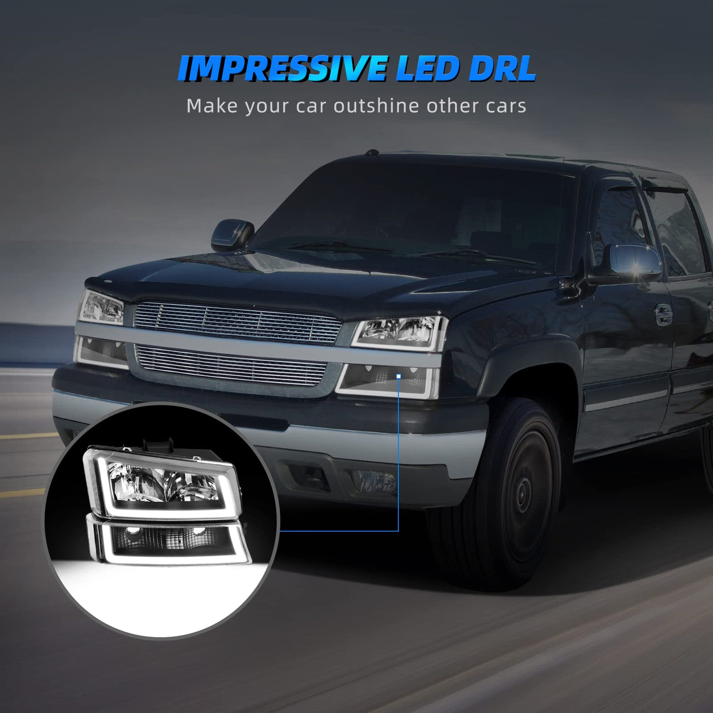 Autosaver88 Headlight Assembly With Led Drl Compatible With 2003 2004 2005 2006 Avalanche Silverado 1500 2500 3500/2007 Chevrole