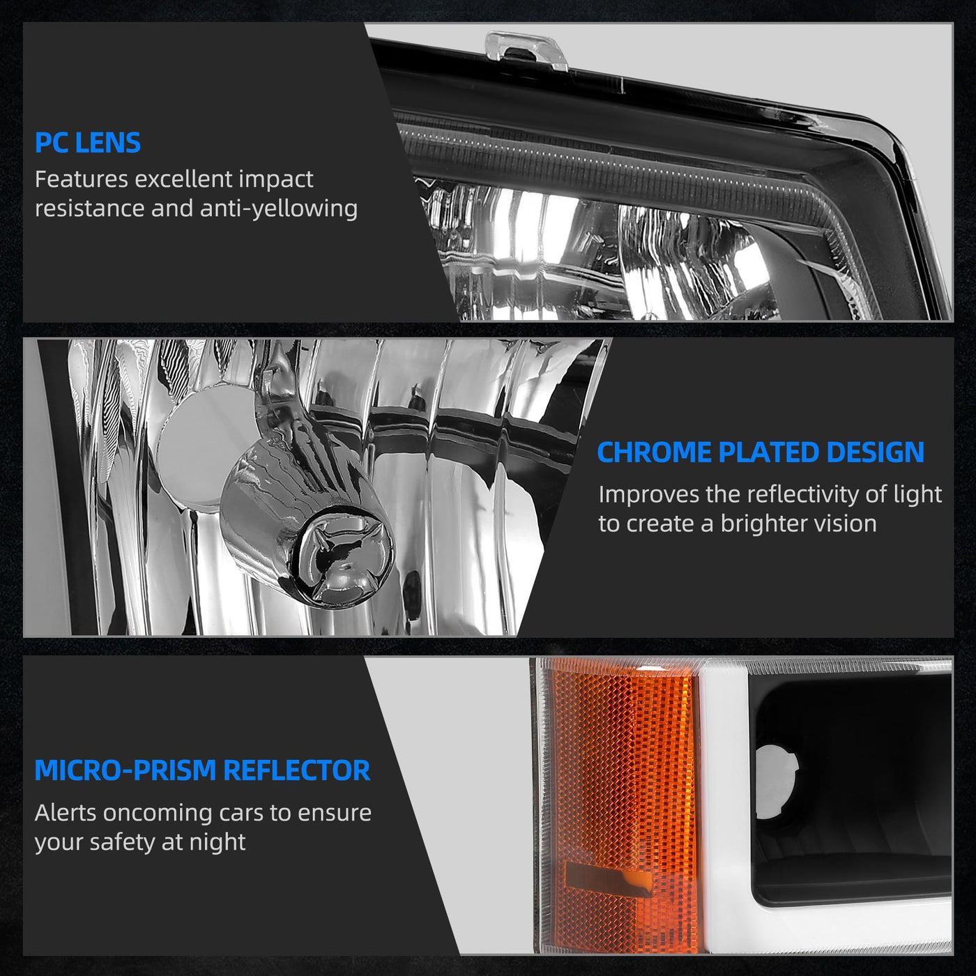 Autosaver88 Headlight With Led Drl Compatible With 2003 2004 2005 2006 Chevy Avalanche Silverado 1500 1500Hd 2500 2500Hd 3500/20