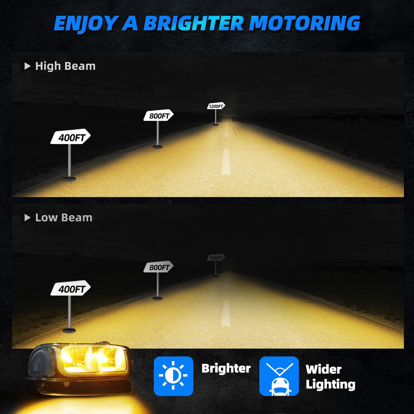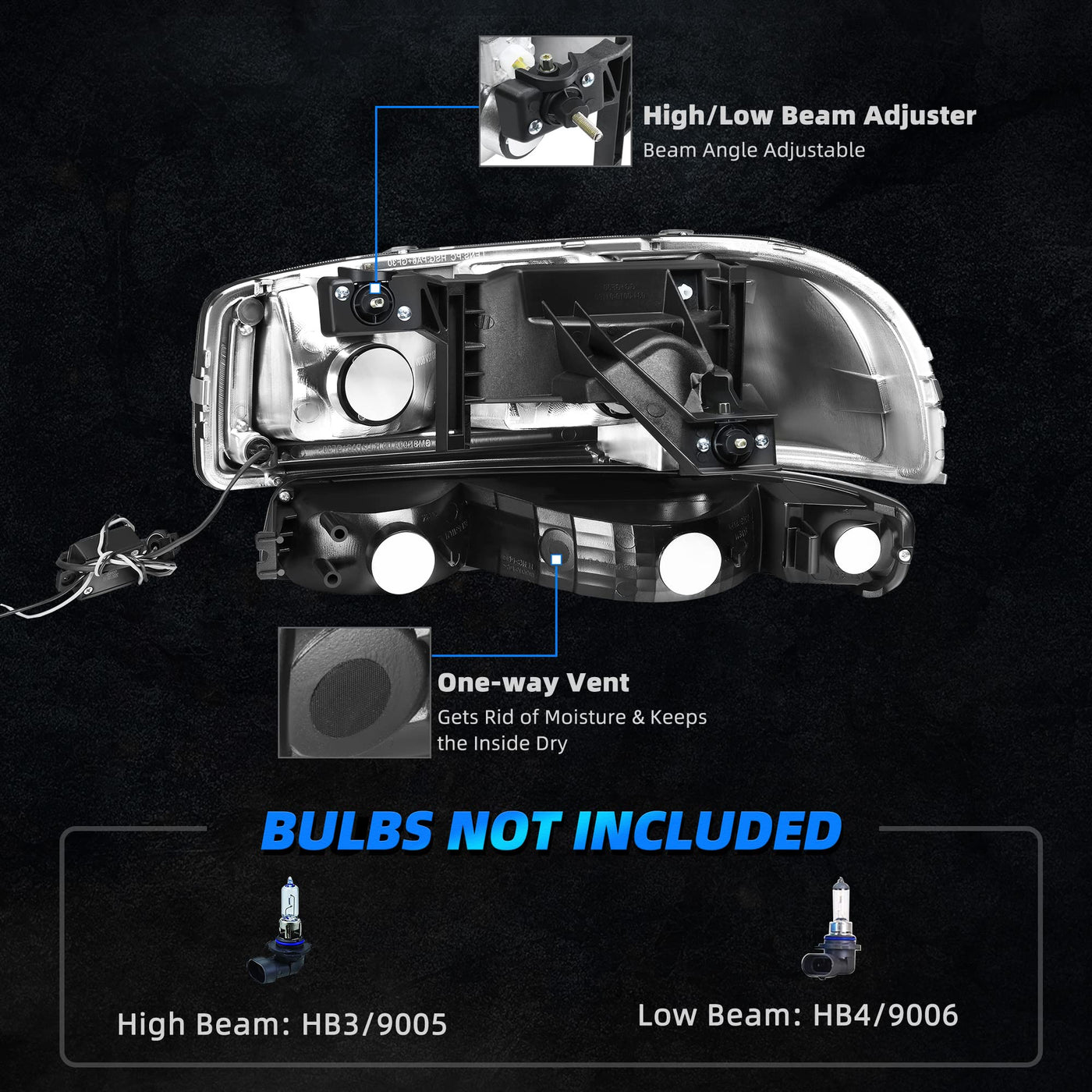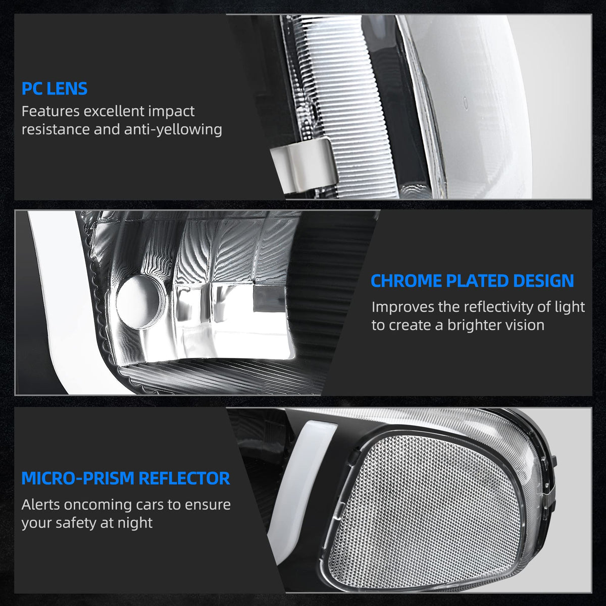 Q: How do these headlights enhance driving safety?A: These headlights enhance driving safety by providing brighter lighting through metallic parabolic reflectors, which creates a smoother and broader beam. Additionally, safety reflectors make your vehicle more noticeable to oncoming traffic and pedestrians at night.