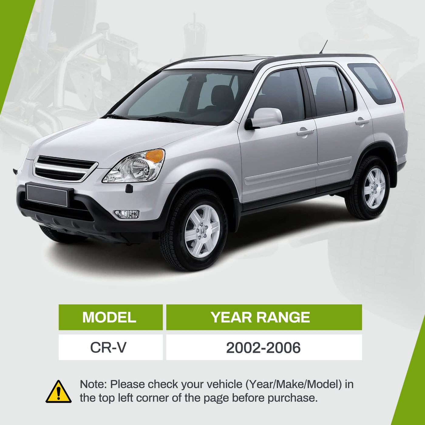 [Compatibility] - Compatible with 2002-2006 Honda CR-V Base/EX/EX-L/LX/SE Sport Utility 4-Door with 2.4L 2351CC l4 GAS DOHC Naturally Aspirated engine | [OE Replacement] - Designed and manufactured to directly replace OE parts for proper fit and alignment. Directly replaces OEM #: 51350-S9A-A02 and 51360-S9A-A02 | [Durability and Strength] - Our control arms are stamped from a solid piece of steel and are electrophoretic coated for unrivaled durability and strength | [Package Content] - 1x Driver side upper control arm w/bushings, 1x Passenger side upper control arm w/bushings. Ball joint not included | [Attention] - Be sure to verify vehicle compatibility using the